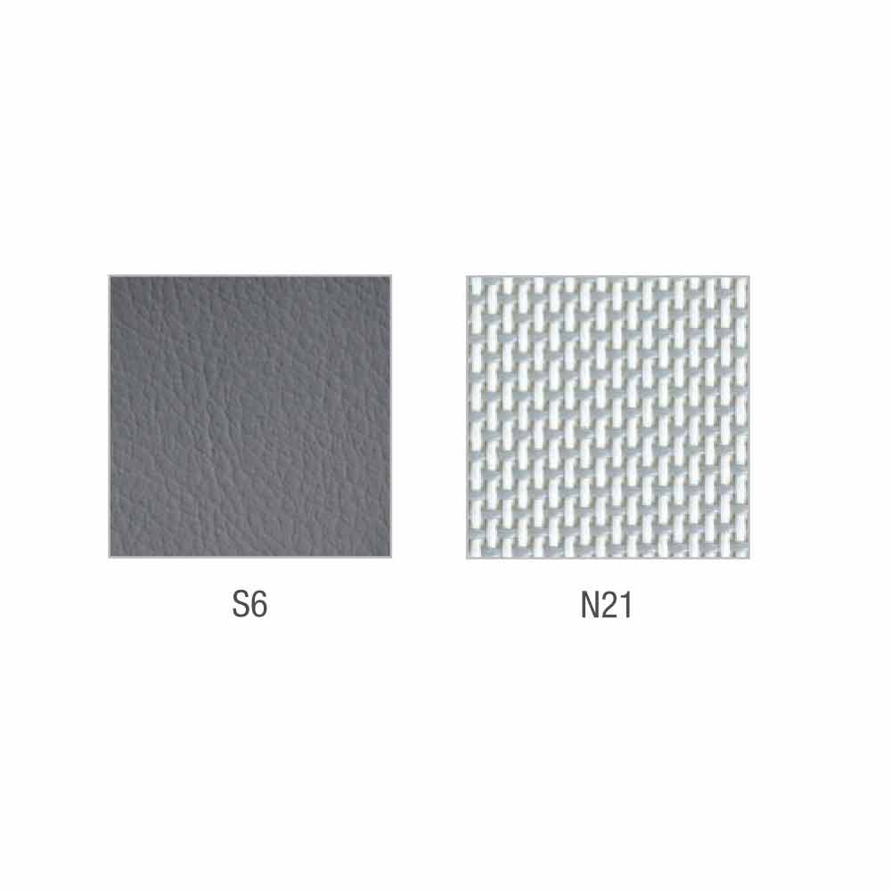 Mina semi-executive and operative armchair with faux leather seat and back in modern design mesh; available in different color combinations between seat and back.