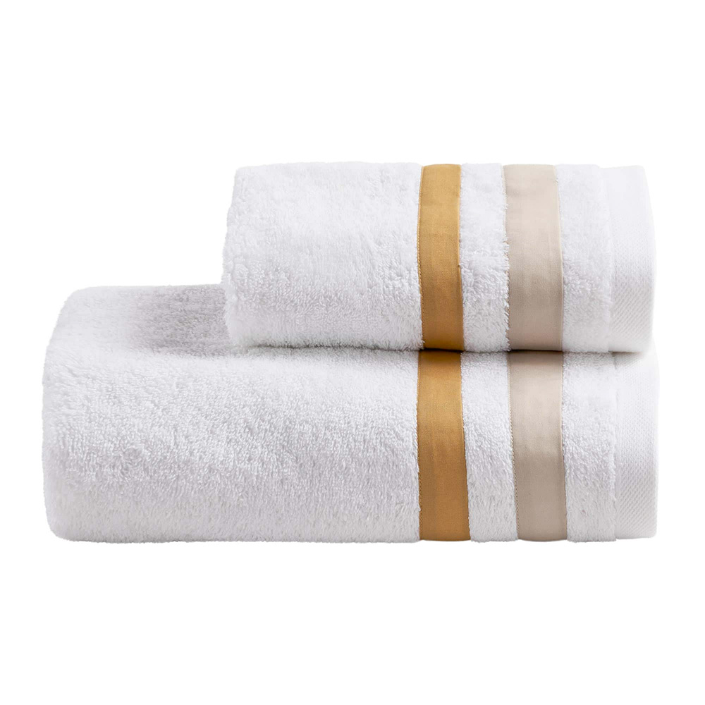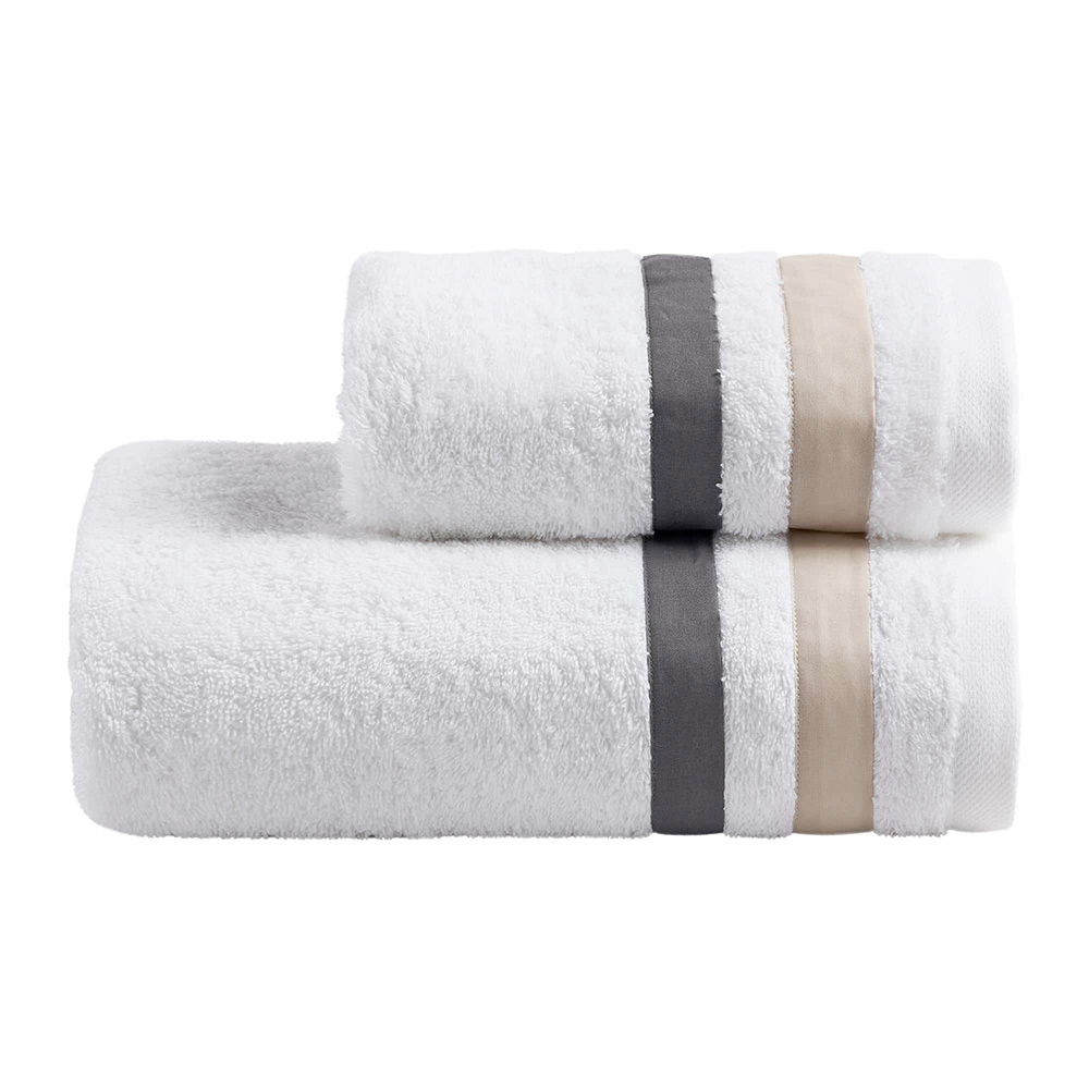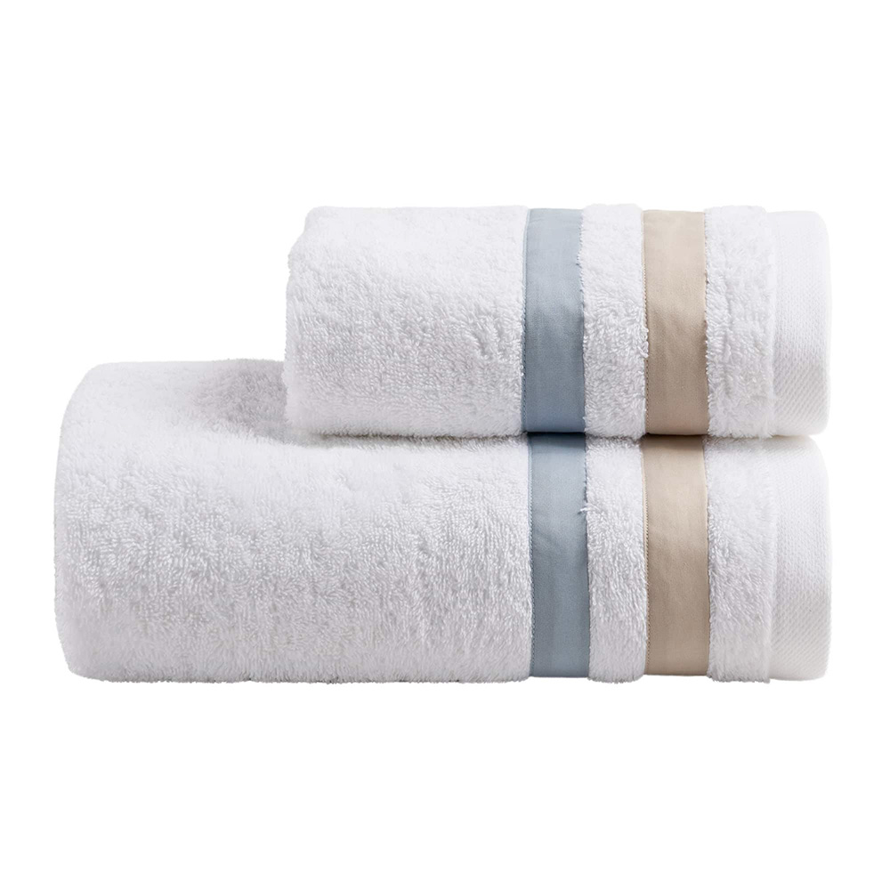 Set of face towel + guest towel in pure cotton sponge 530 gr/m2 with double frill in pure cotton percale 200 tc.