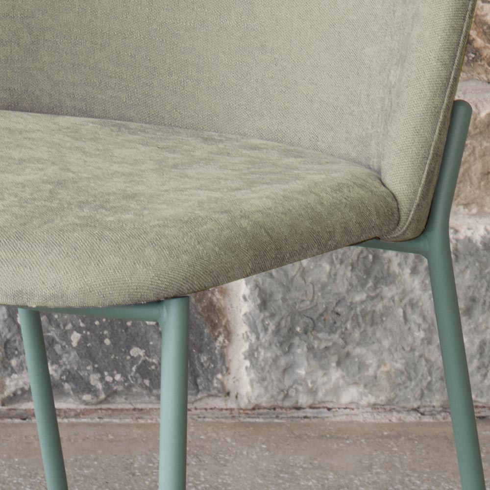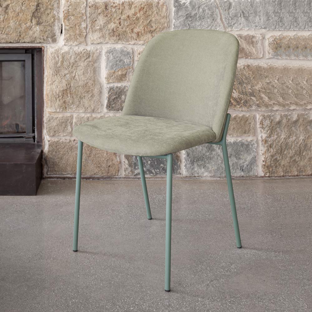 Chairs with a modern design, defined by soft lines that guarantee comfort and versatility. They are characterized by a covering available in different colors and materials, which allow them to adapt to different furnishing styles. The powder-coated metal legs support an upholstered body, with matching stitching that contributes to the clean and elegant design of the product. This collection is ideal for those looking for furnishing elements with a contemporary design that do not compromise comfort.