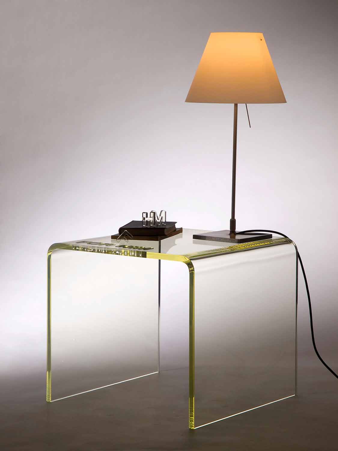 Set of 2 modern design night tables in transparent fluo yellow methacrylate handcrafted in Italy.