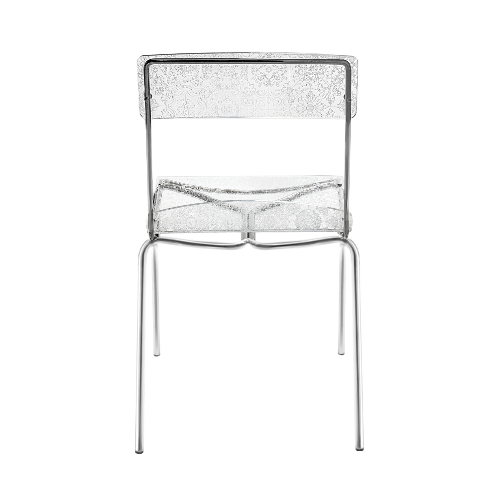This chair is not simply a piece of furniture; it's a transparent touch of class that invites light and air to circulate freely, bringing any space to life. Whether placed around a dining table, in a study nook or in a waiting area, it will bring a breath of freshness and a hint of lasting shine.