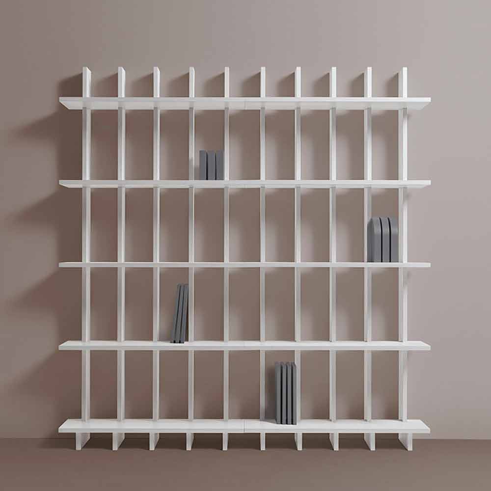 Wall bookcase in open pore lacquered ash with shabby chic design in different colours, made in Italy.