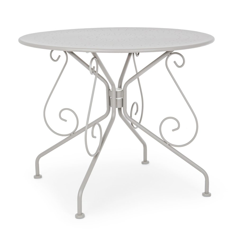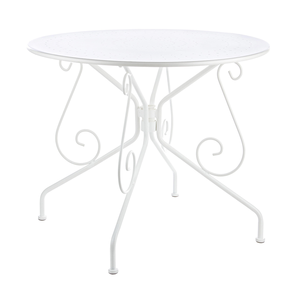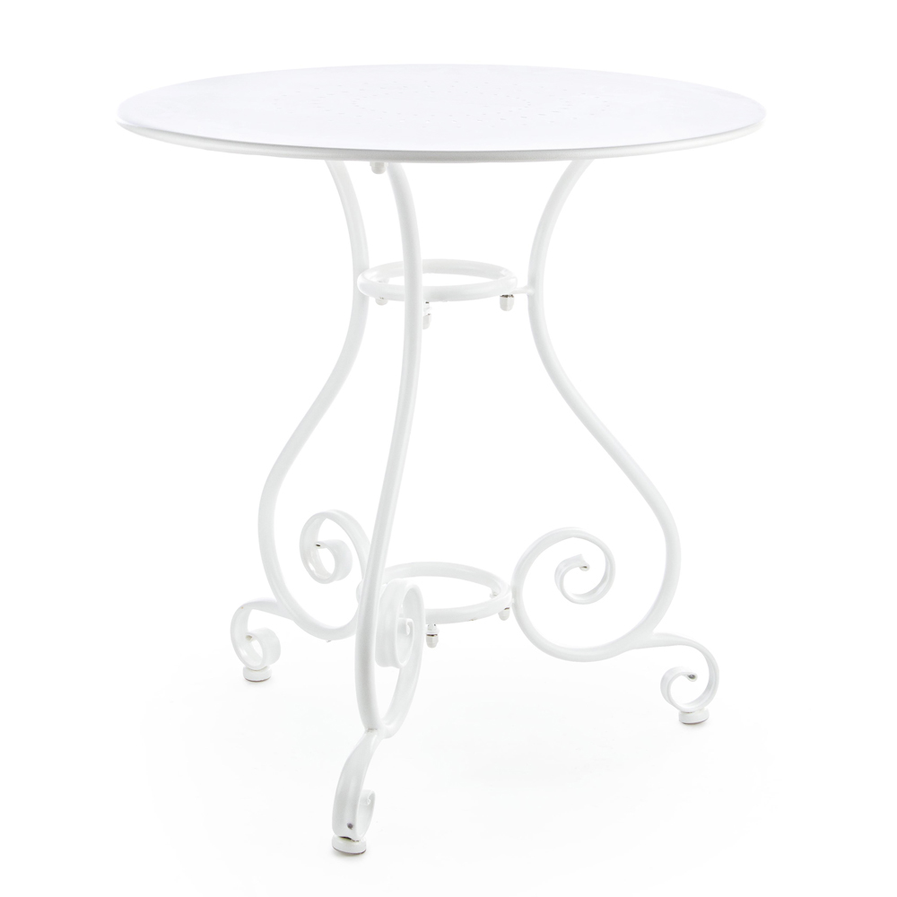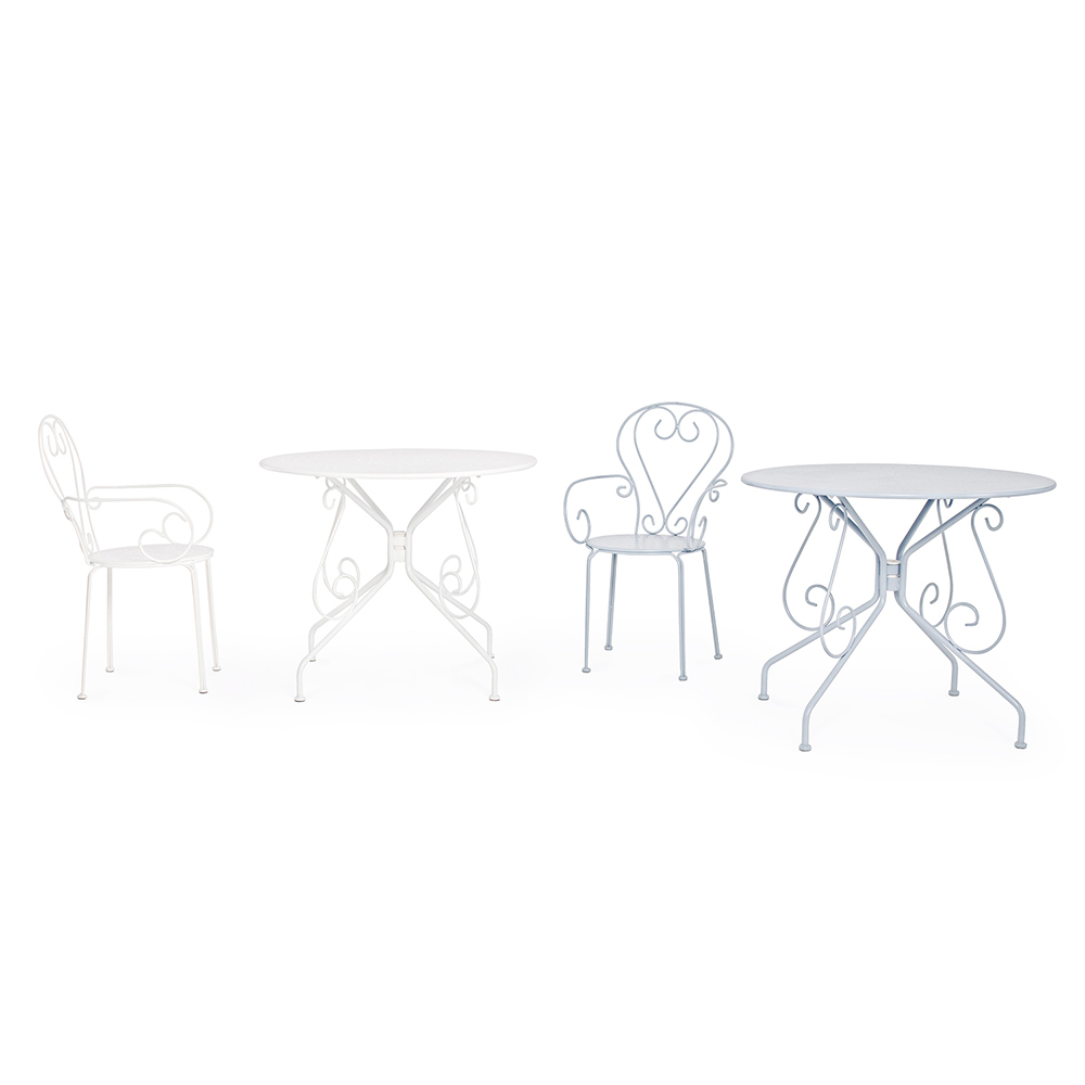 Round table for outdoor Shabby Chich style made of painted steel and available in two different sizes.