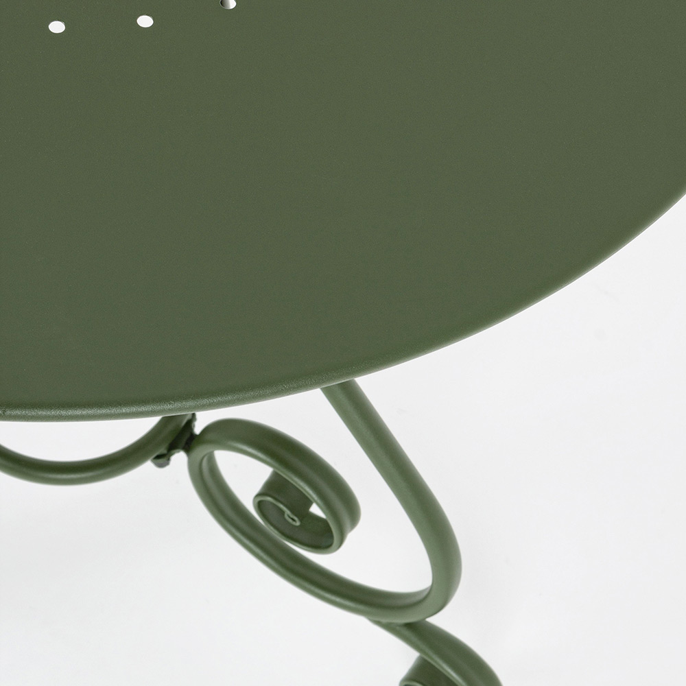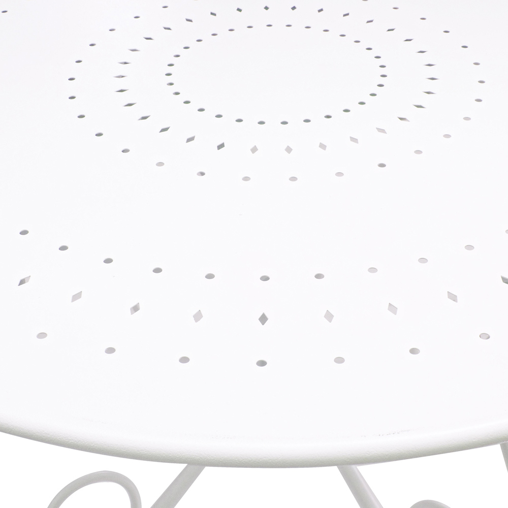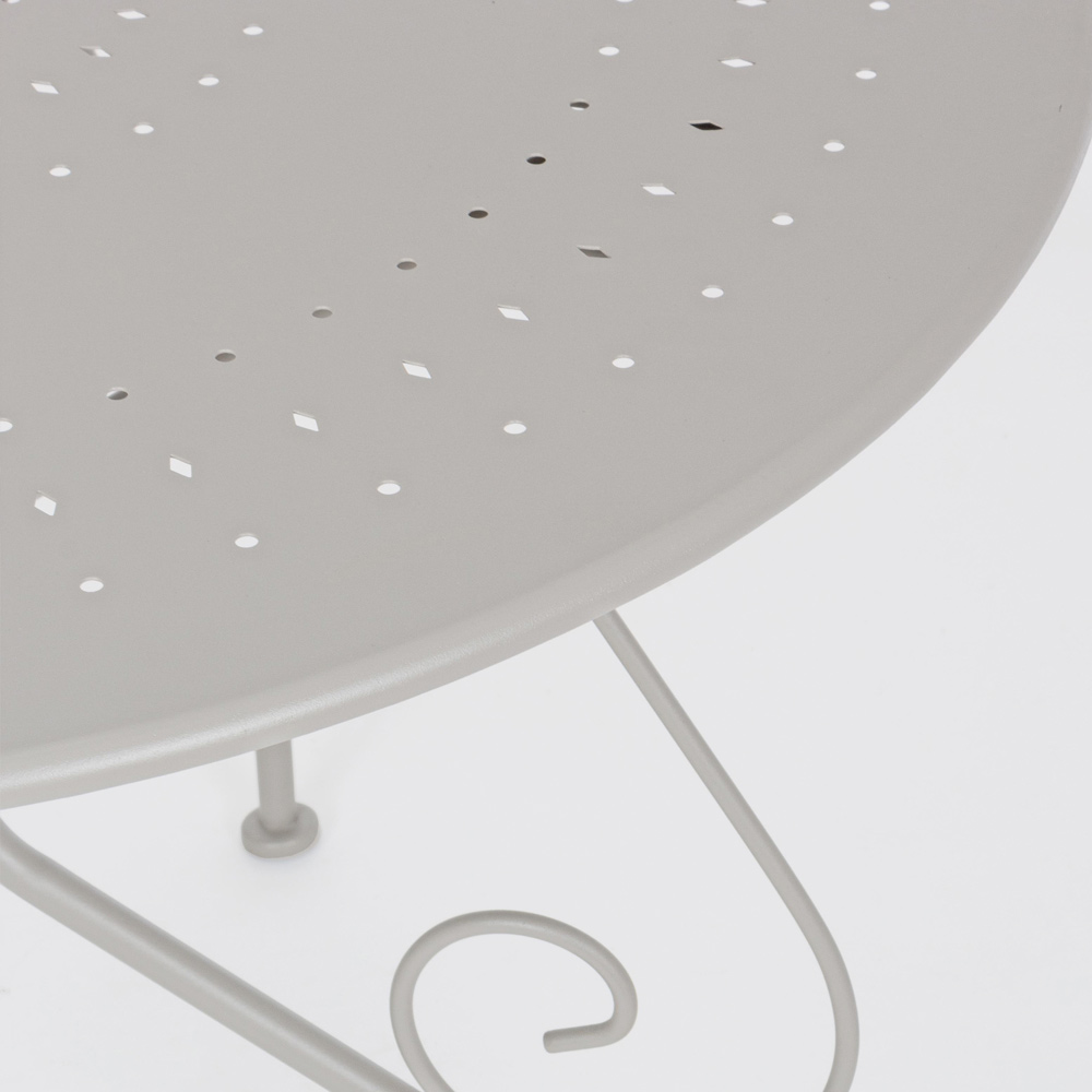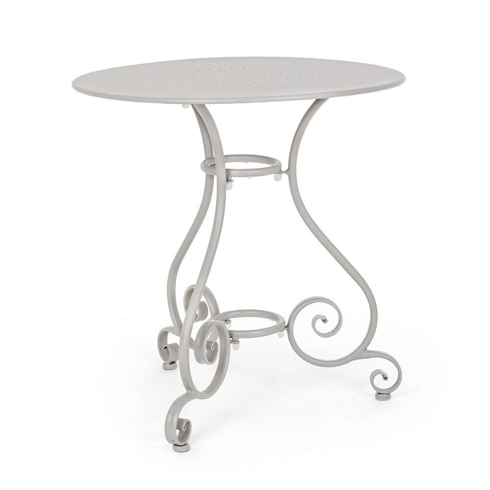 Round table for outdoor Shabby Chich style made of painted steel and available in two different sizes.