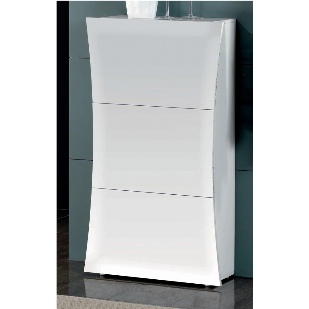 White modern column shoe cabinet in arched design wood with 3 doors, made in Italy.