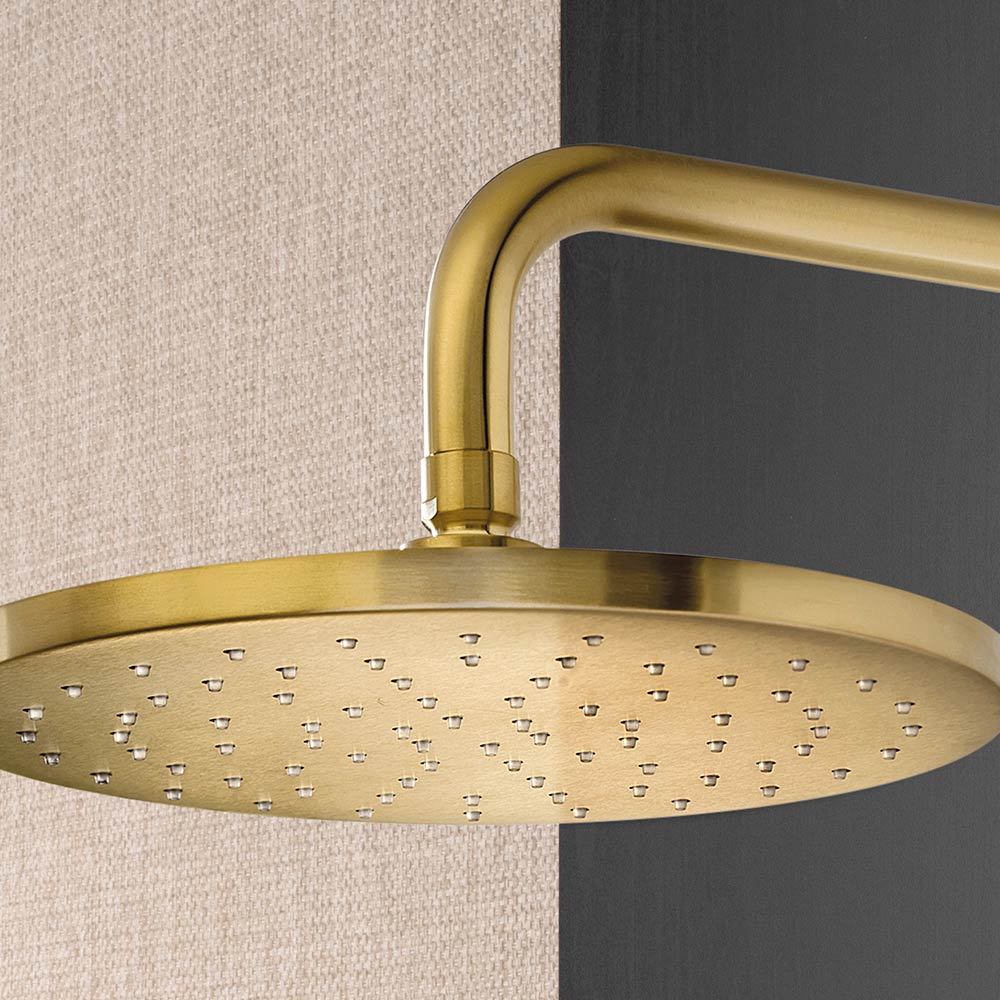 Shower arm with inspectable anti-limescale round shower head made of AISI 316L stainless steel , 100% recyclable material, entirely Made in Italy.