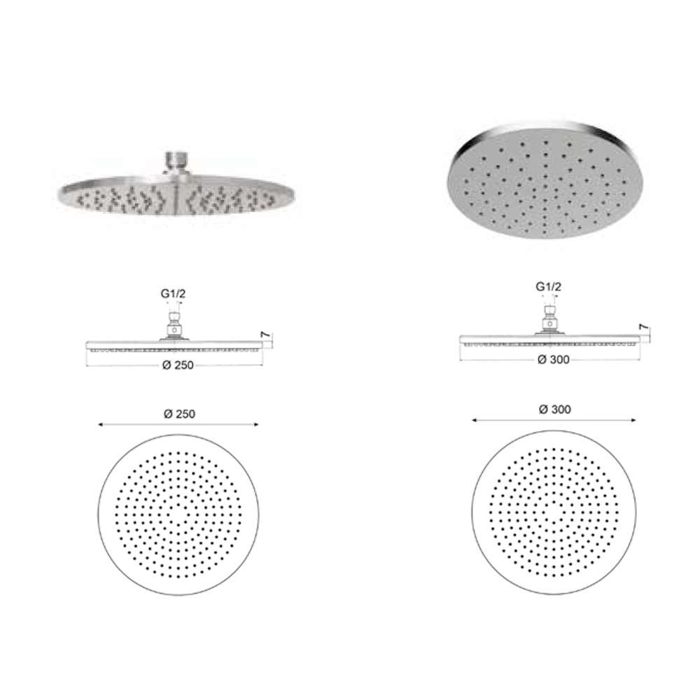 • shower head: diameter 30 cm x height 7 cm - arm 35 cm