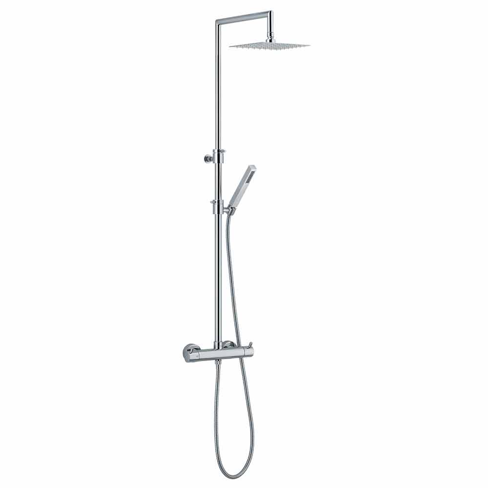Modern shower column Made in Italy with thermostatic mixer and integrated diverter in chromed brass with steel and ABS accessories.