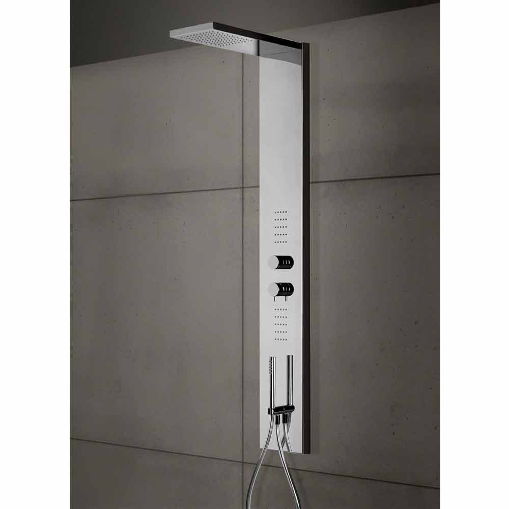 Steel panel shower column with three outlets with rain shower head, high quality product Made in Italy.