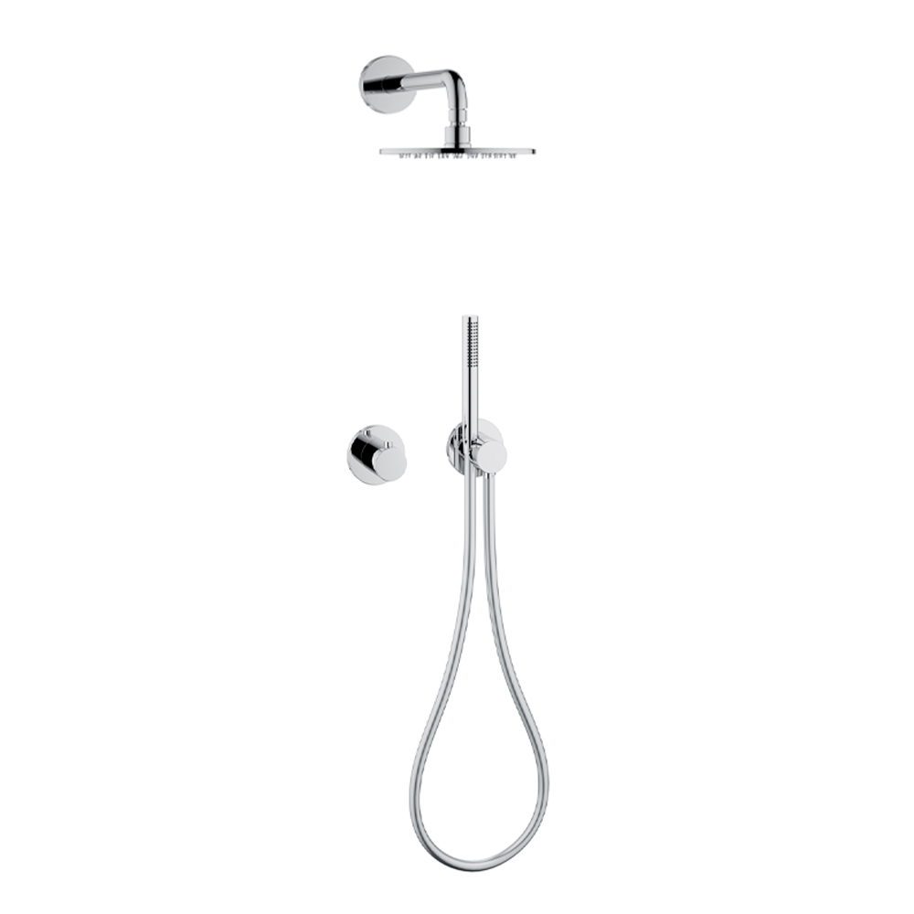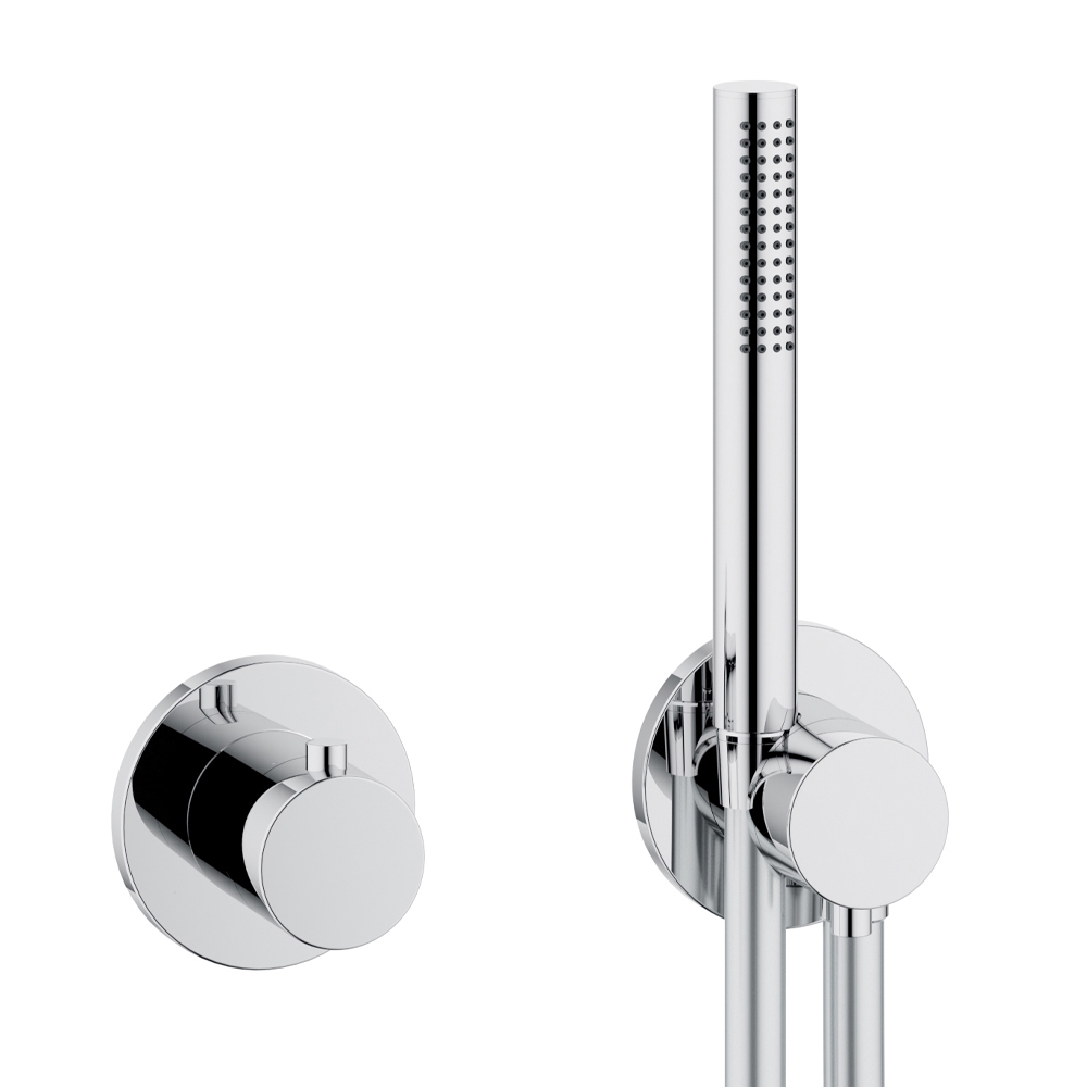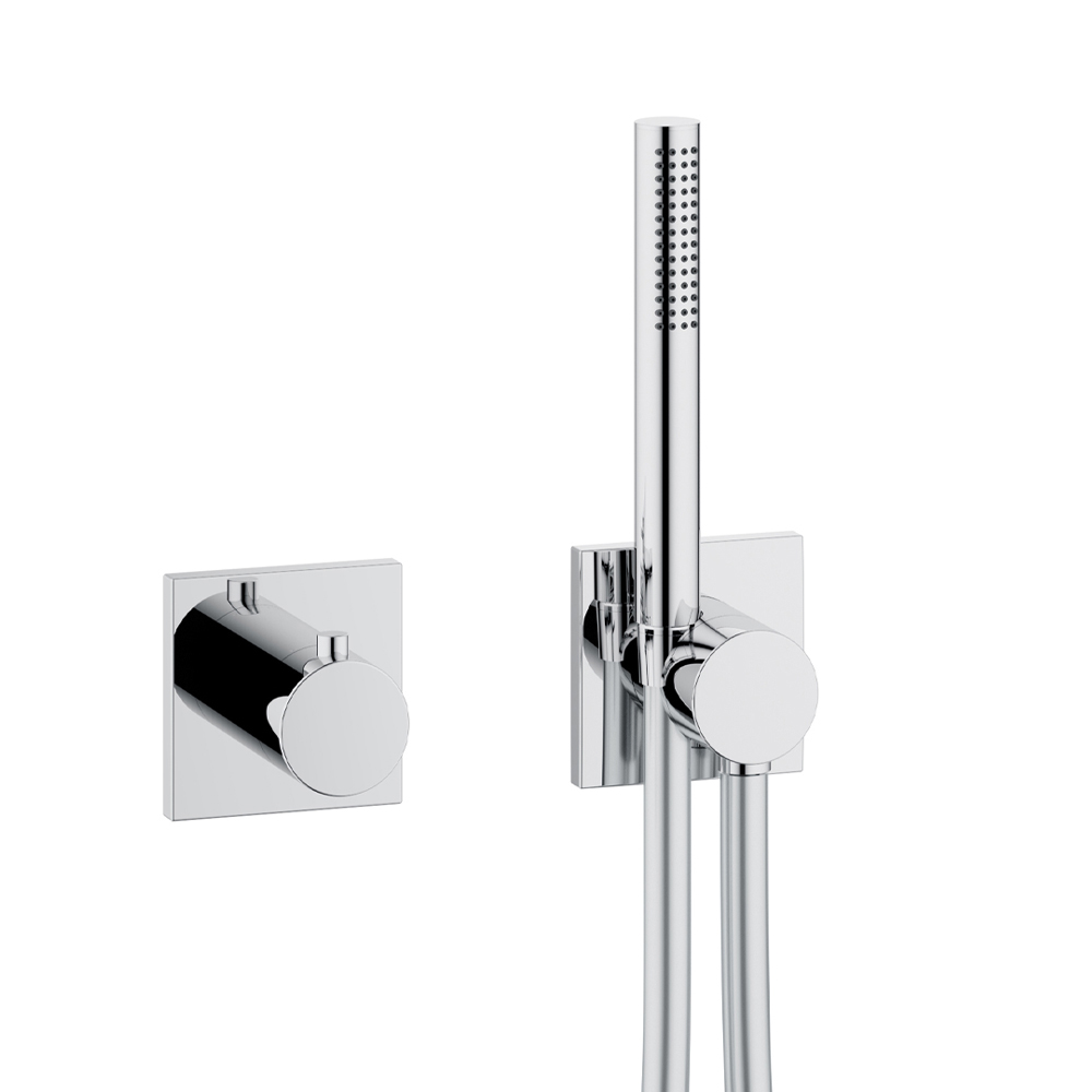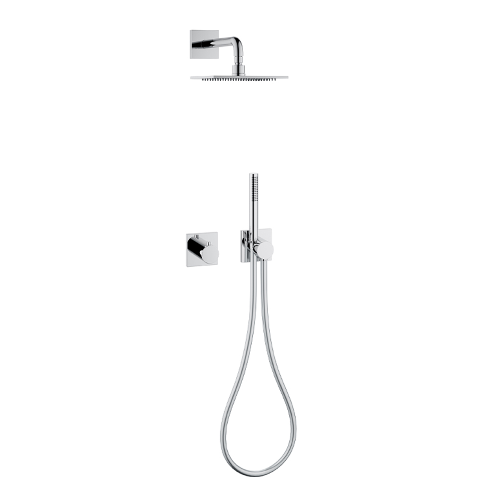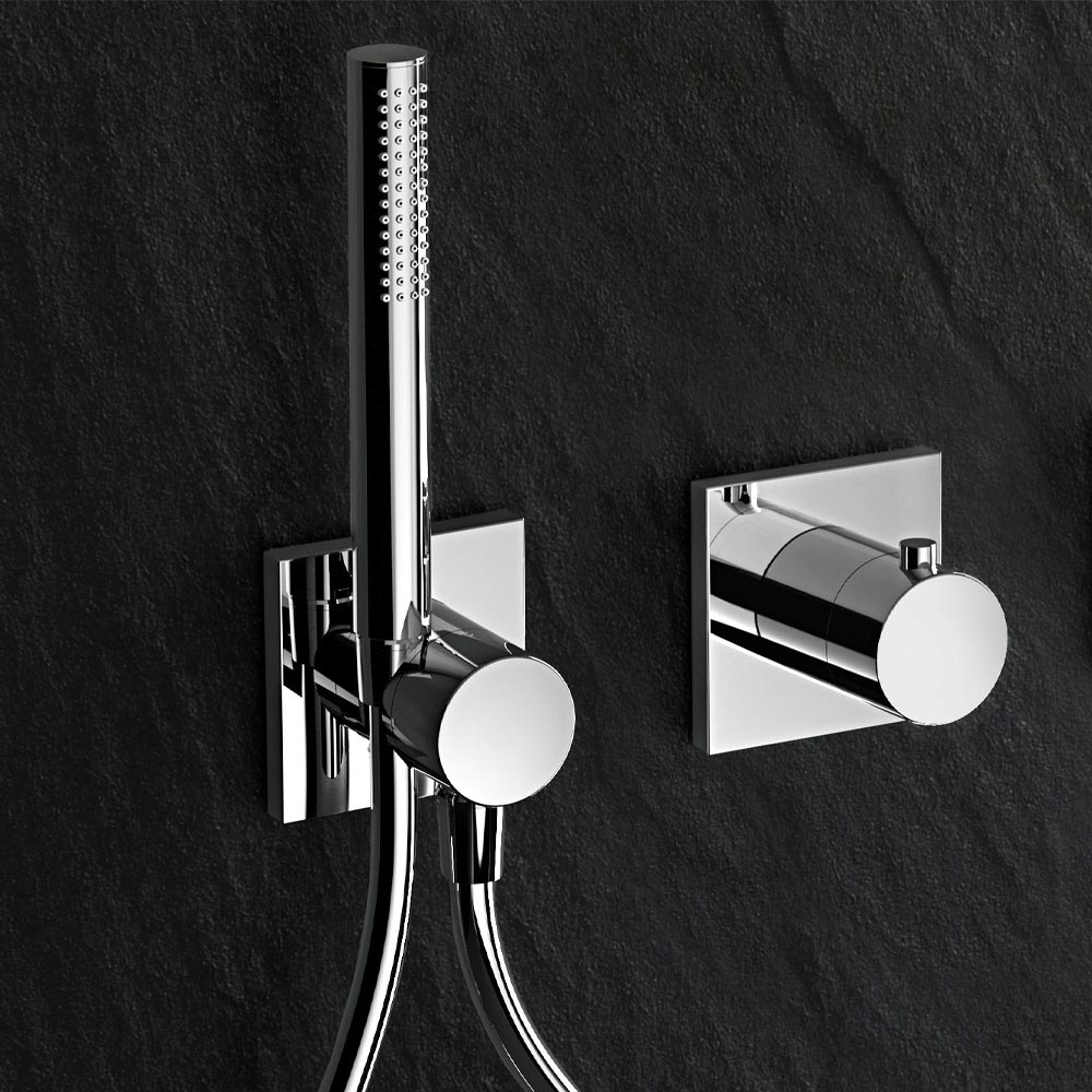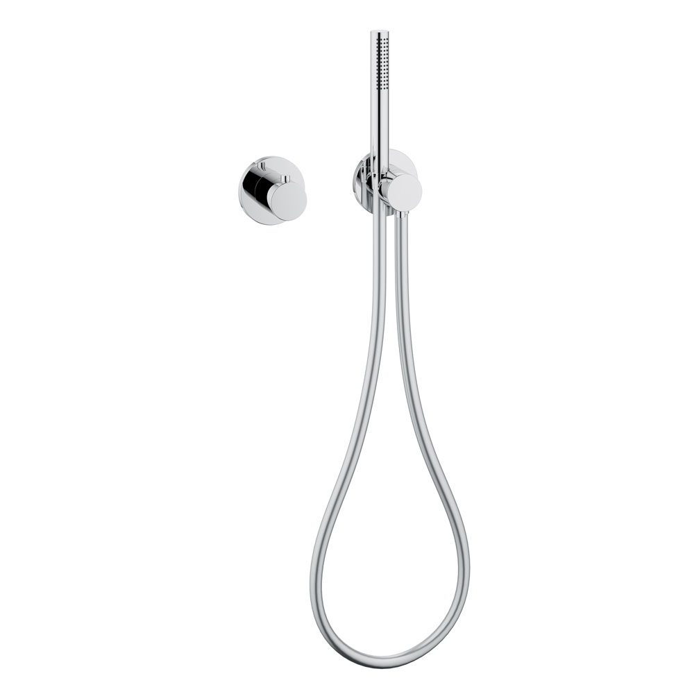 - Concealed two-way stop valve and diverter with flexible hose connection and wall shower support