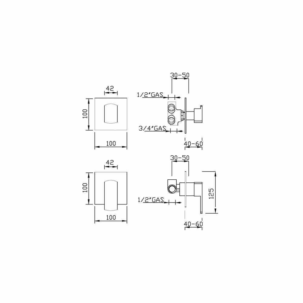 shower mixer with 5-way diverter complete with built-in part and external parts.