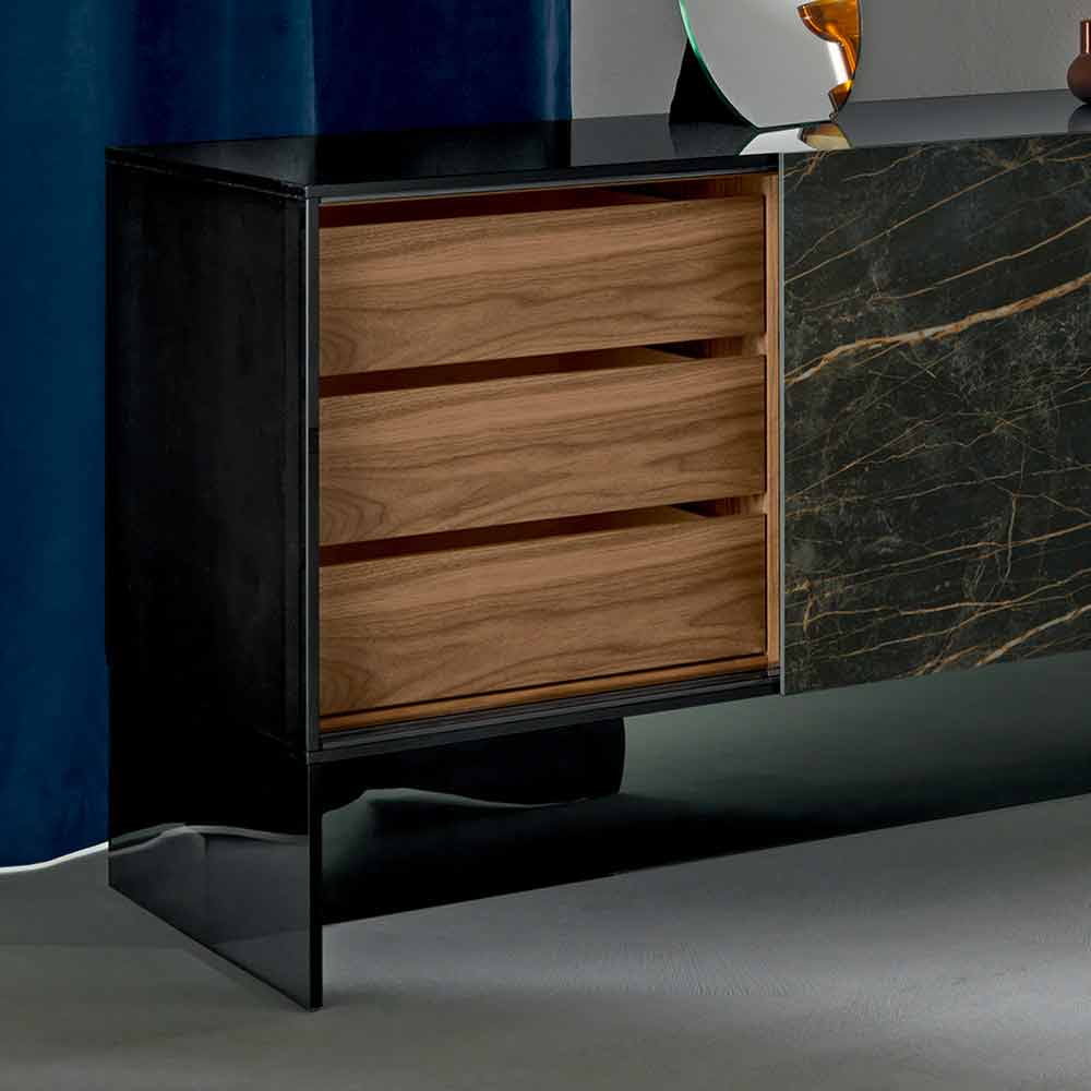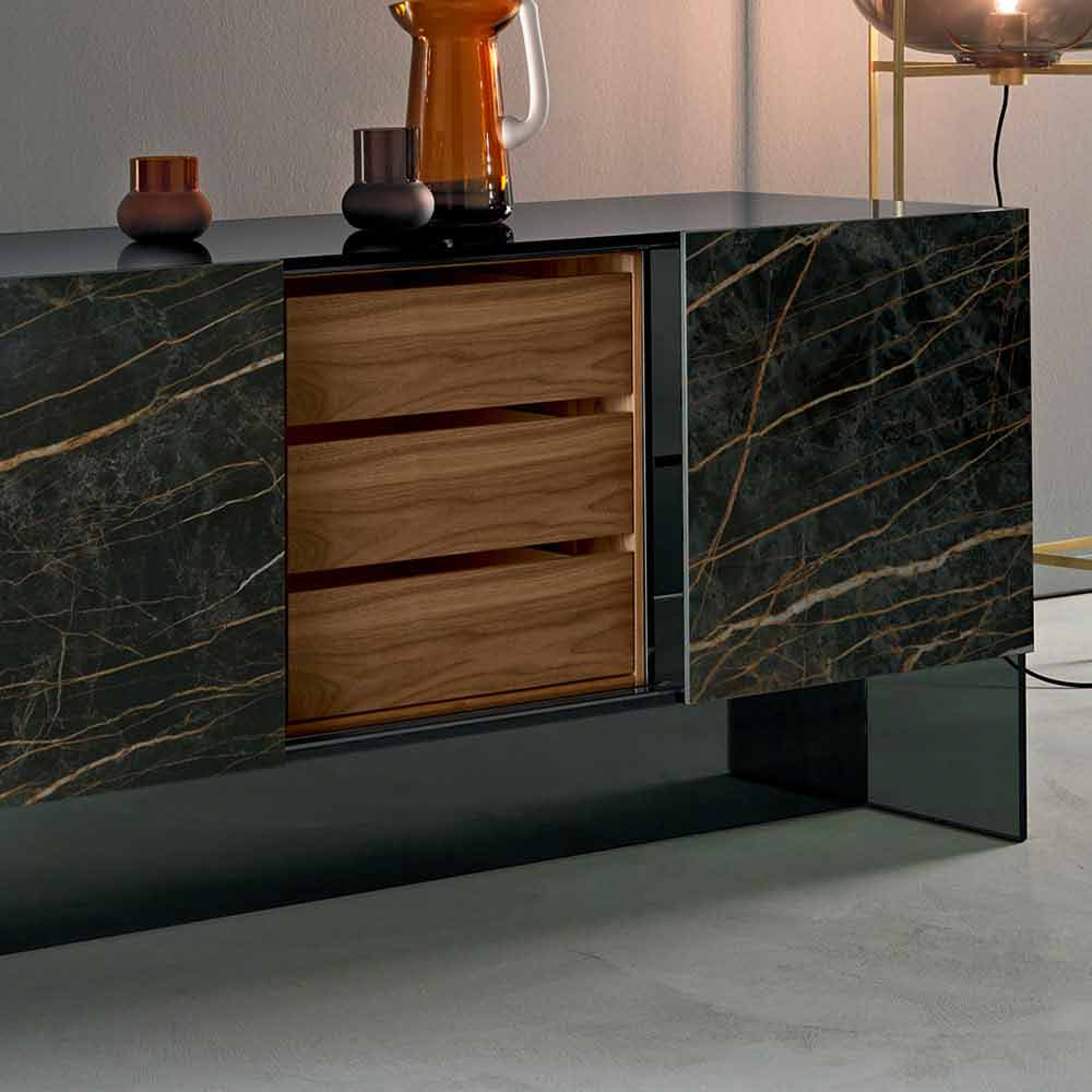 Living Room Sideboard with 2 Doors in Ceramic and Smokey Glass Structure Made in Italy - Scocca