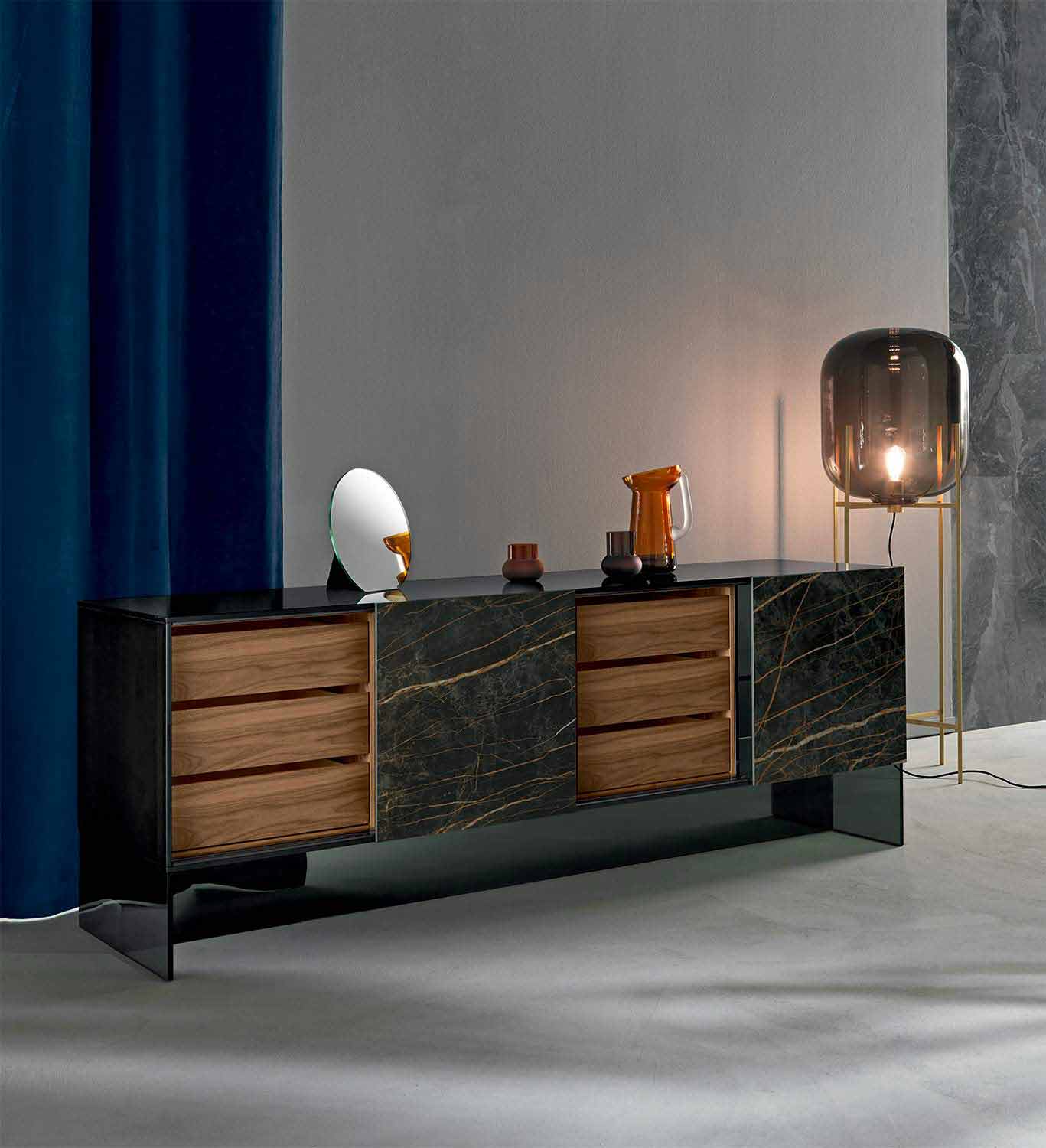 The living room sideboard Scocca is realized by hand in Italy with high-quality materials.