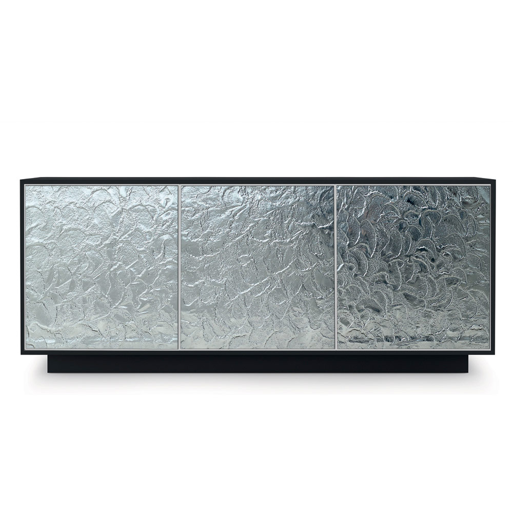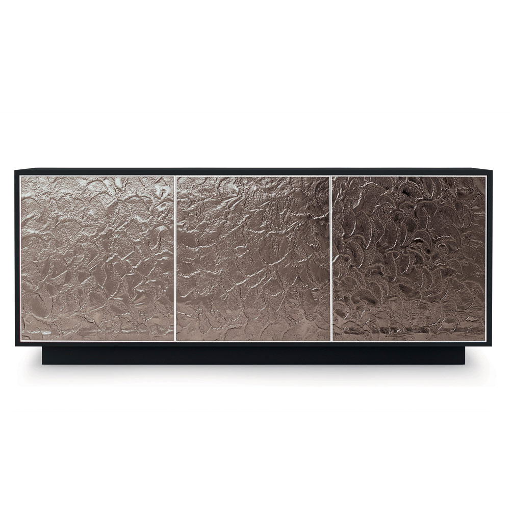 Sideboard in matt black lacquered wood with Made in Italy worked glass doors.