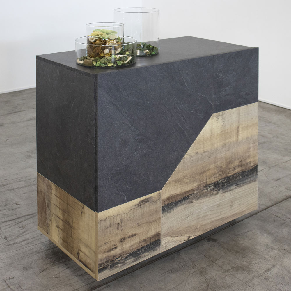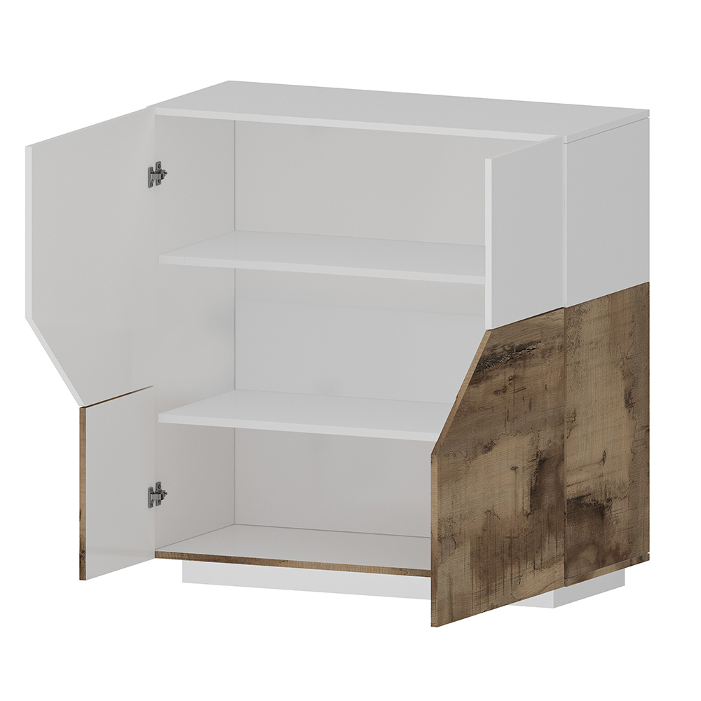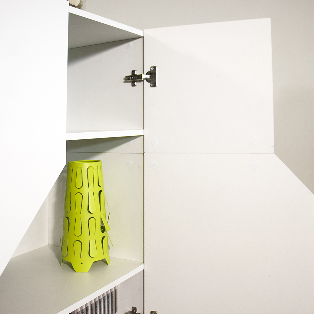 roomy and functional . The white or wood finish front, combined with the two finishes that cover the top and bottom of the product, captures the attention, creating a
