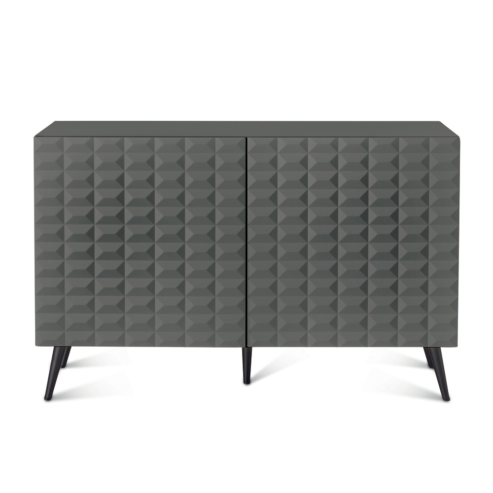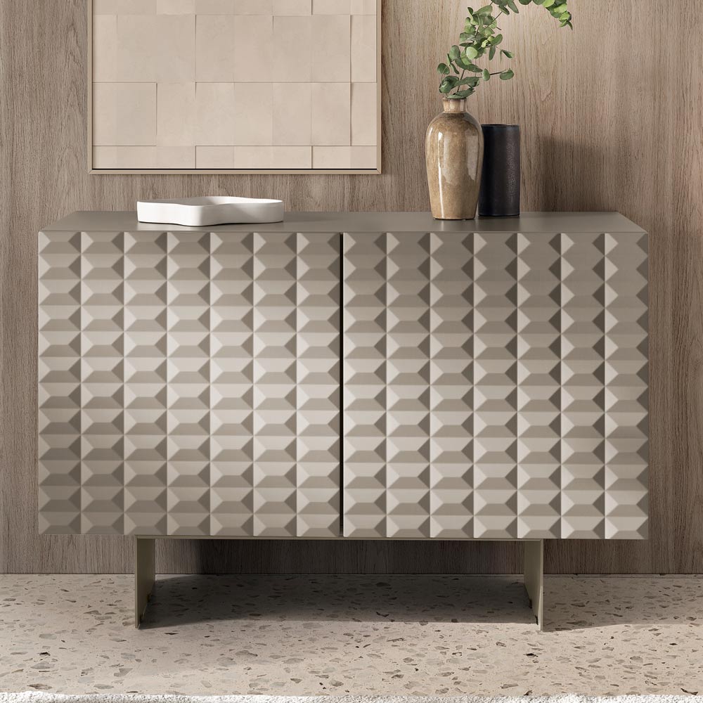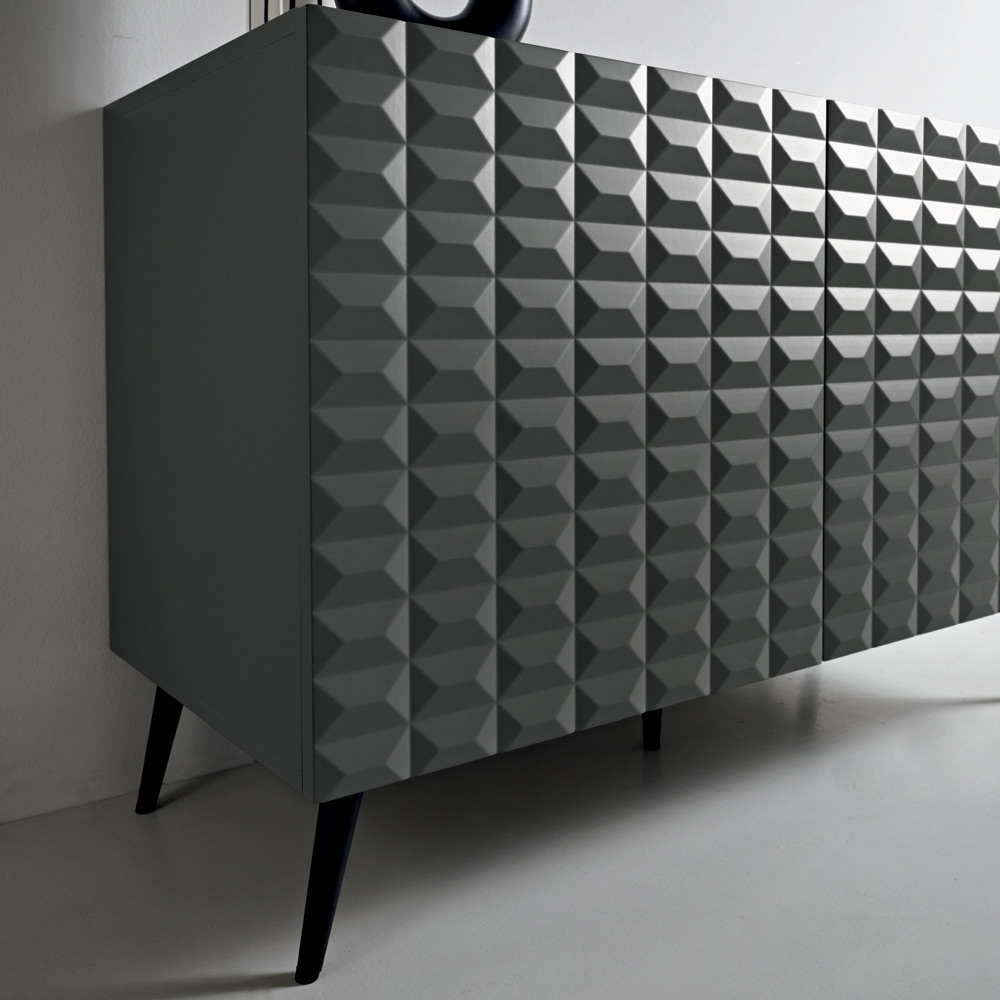 Made in Italy designer sideboard with three-dimensional diamond-shaped doors and metal base