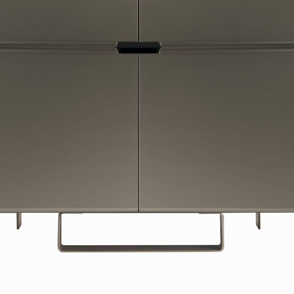 Living room sideboard with a modern style completely made in Italy composed of iron feet with nickel finish and   charcoal finish mdf shell with nickel finish doors . The use of simple but resistant materials transform this   product in a piece of furniture with great versatility and an attractive and interesting appearance.