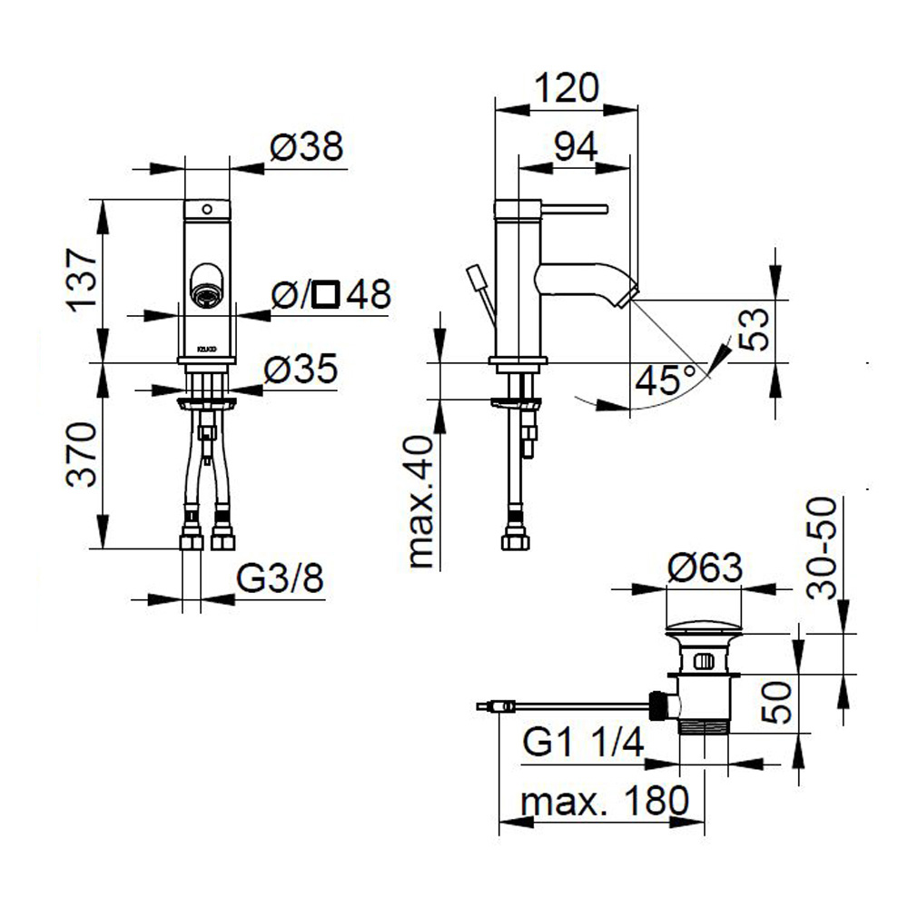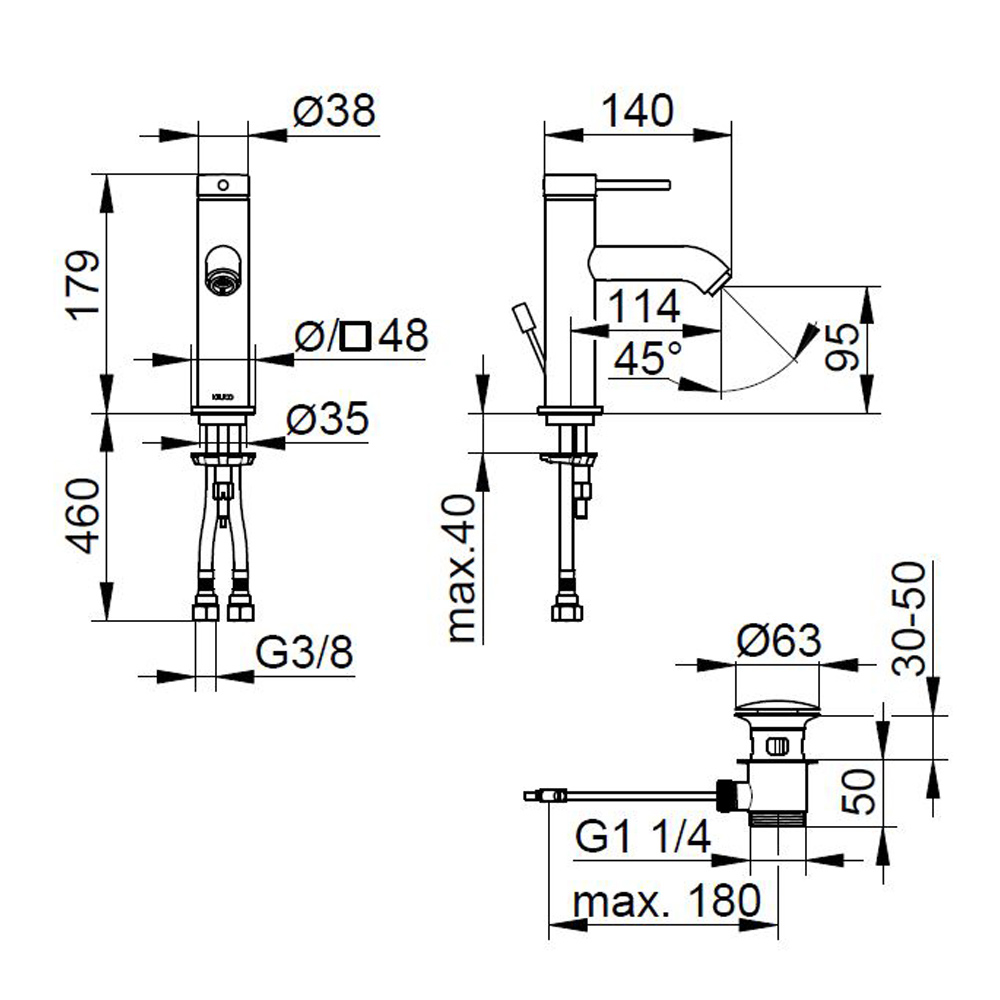 high quality materials. Technical features:- with or without 1 1/4 inch pop-up waste;