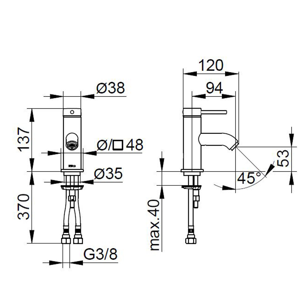 - aerator M 20x1, pressure pipes 570 mm, G 3/8 inch;