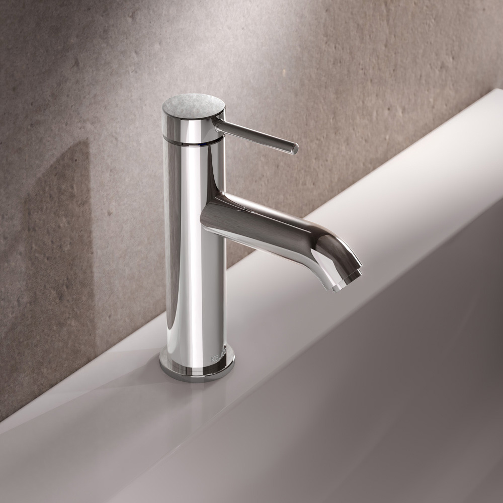 single-lever basin mixer has a design with perfect synchrony between the handle and the spout.