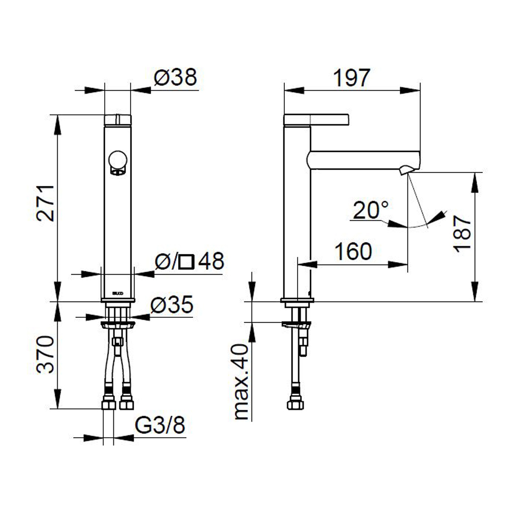 • aerator M 20x1, pressure pipes 570 mm, G 3/8 inch;