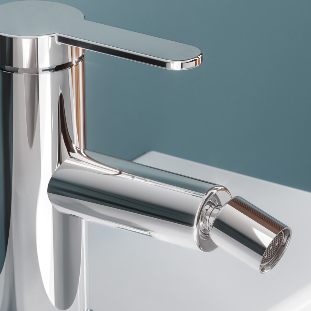 single-lever bidet mixer has a design with perfect synchrony between the handle and the spout.