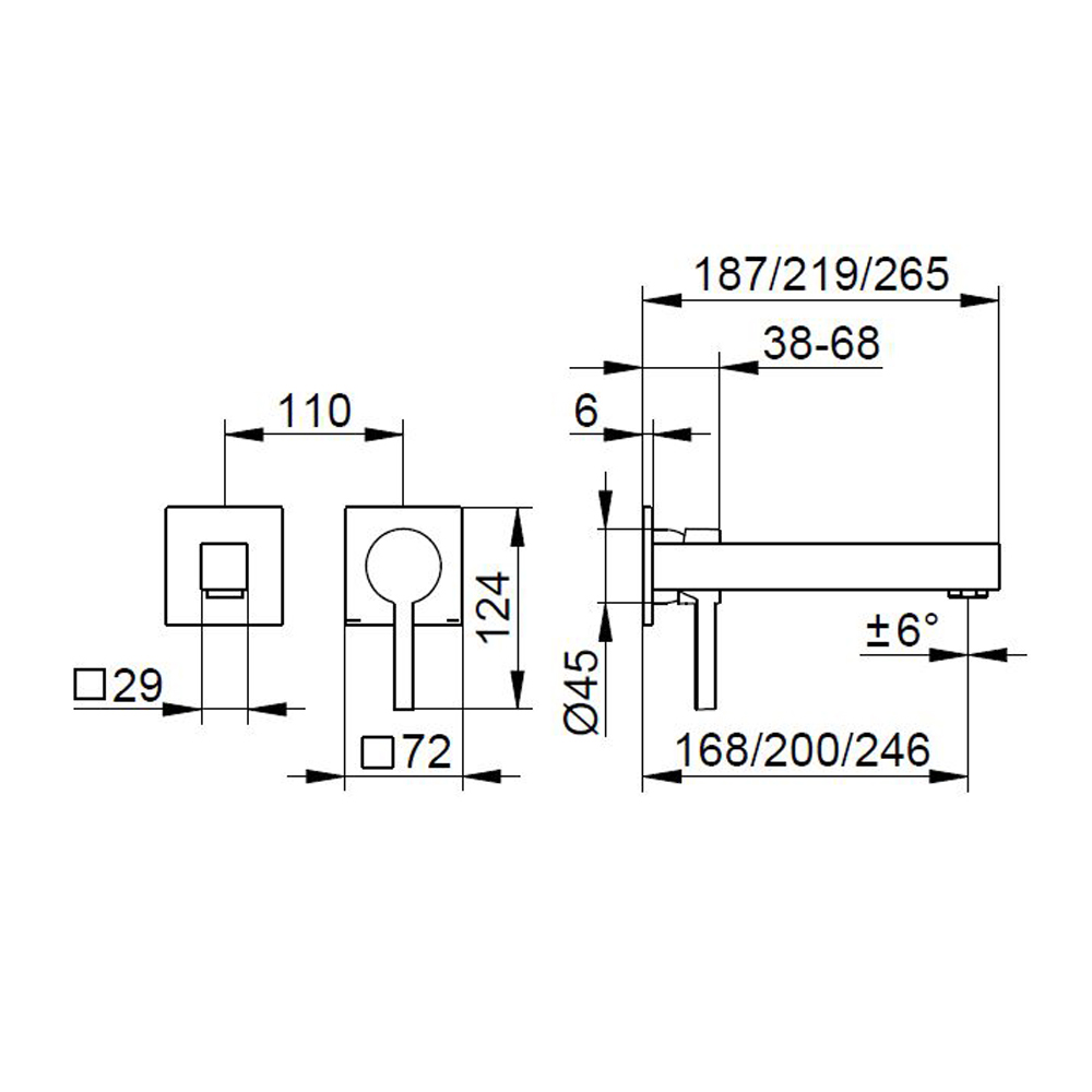 Wall-mounted single-lever basin mixer tap, square design, 3 sizes.