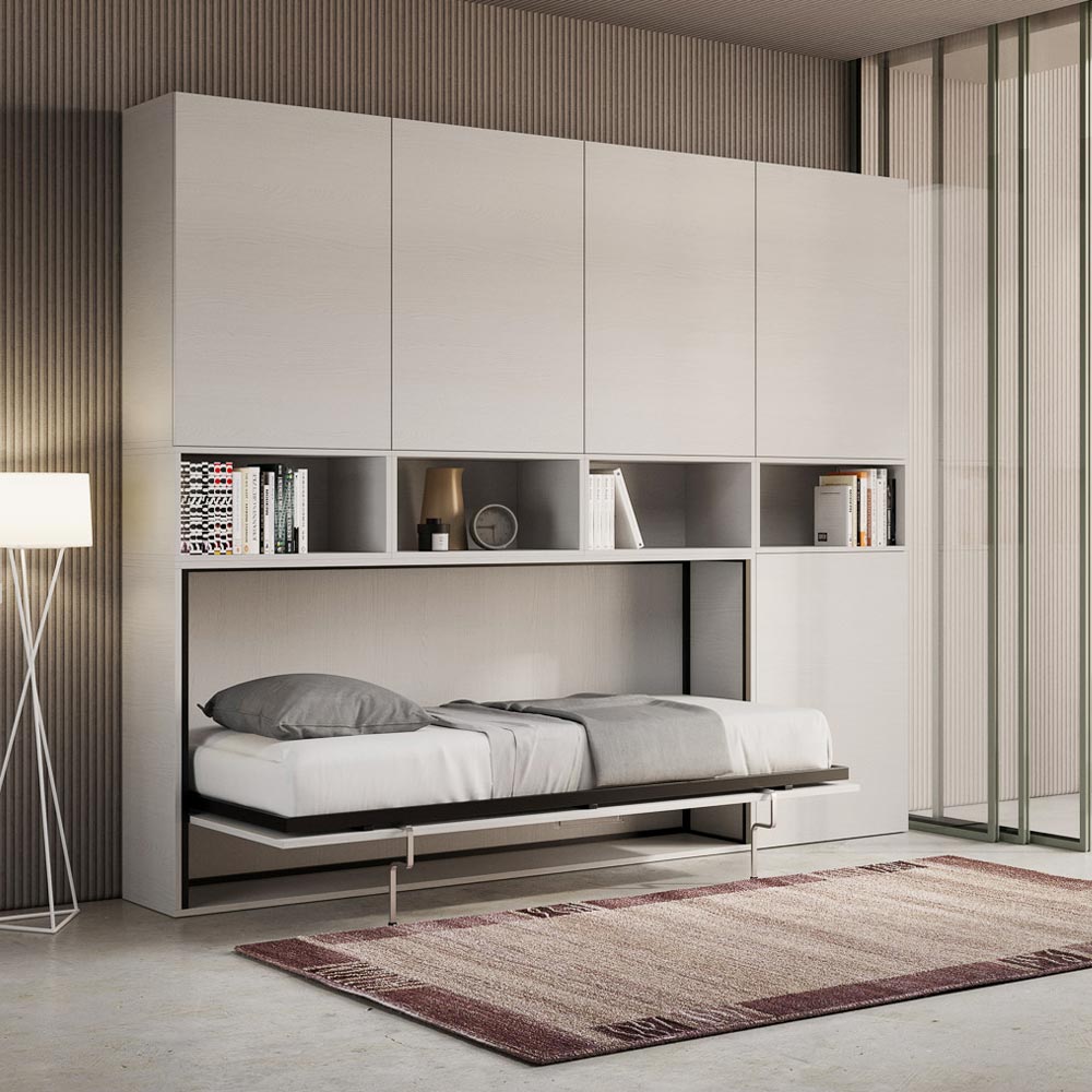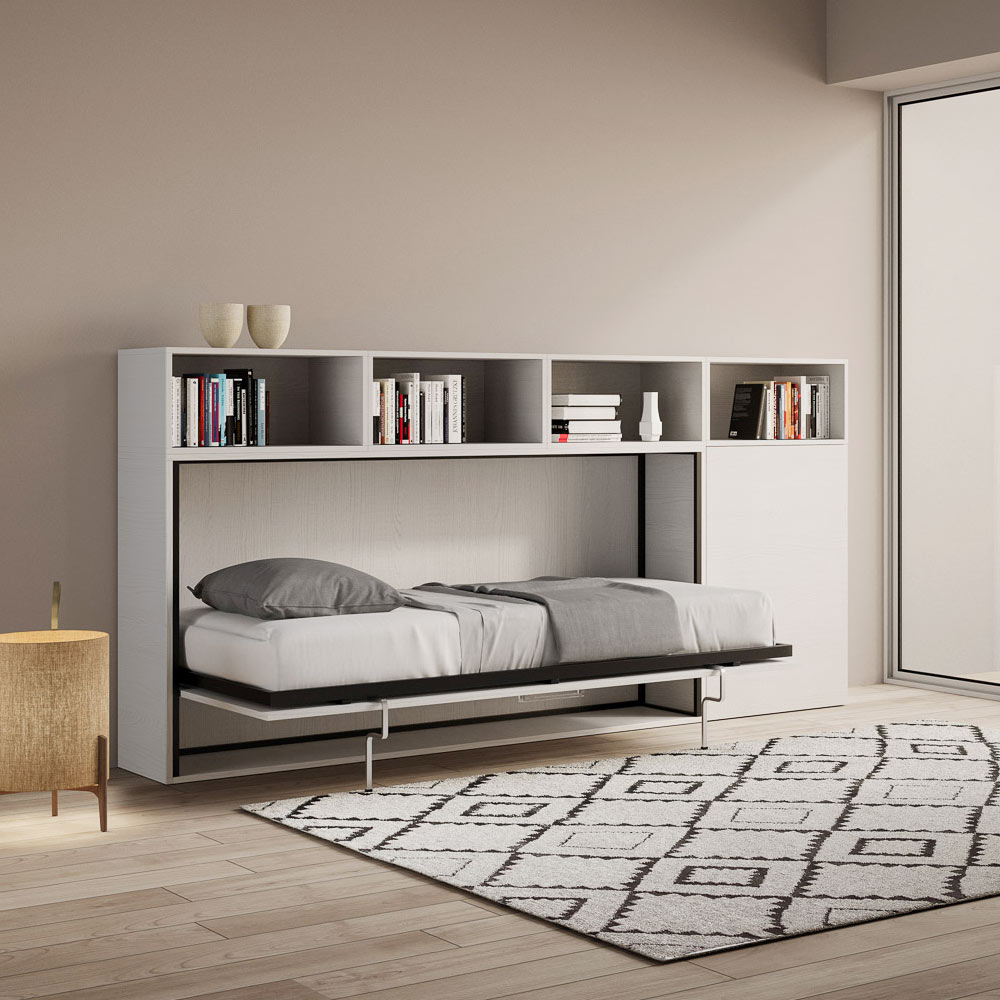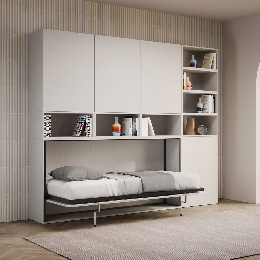 Single foldaway bed that integrates with a composition of Made in Italy furniture