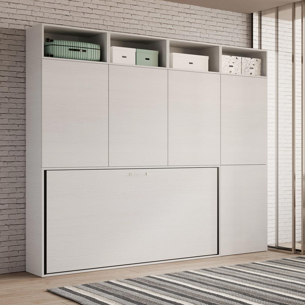 - COMPOSITION E : single foldaway bed in a bookcase/wardrobe with eleven compartments (four with door and internal shelf and seven open compartments) - Closed bed against the wall: 266.5 x 39.2 x height 226.7 cm / Open bed: 266.5.9 x 106 x height 226.7 cm
