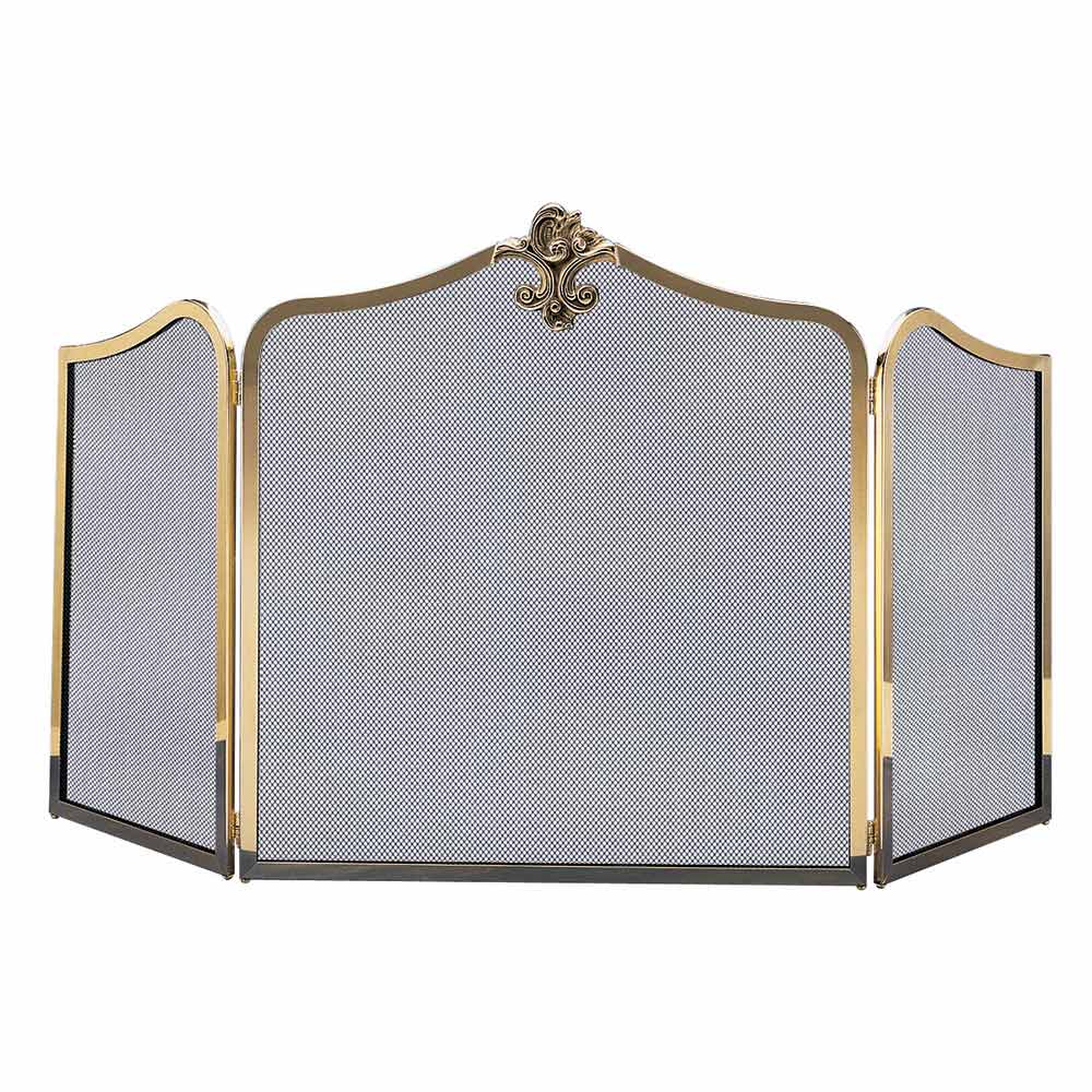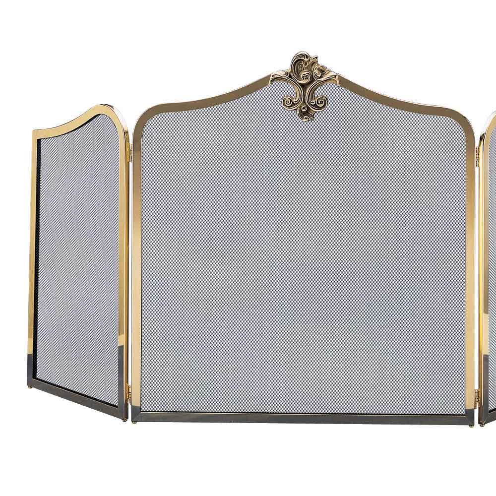 This fireplace spark screen is a luxury accessory that combines functionality with a refined design . The brass frame frames a finely woven steel mesh that traps sparks without obstructing the view of the flames. The upper part is embellished with a decorative brass ornament , which adds a sophisticated touch of ancient splendor.