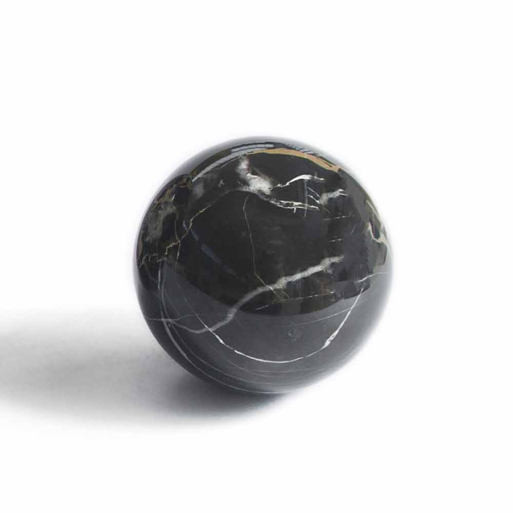 Innovative and refined paperweight characterized by the particular sphere design and by the glossy Portoro marble of which it is composed. It is a unique piece as each block of marble used differs from the others in veins and shades. Each product is handcrafted by professionals specialized for generations in marble processing.
