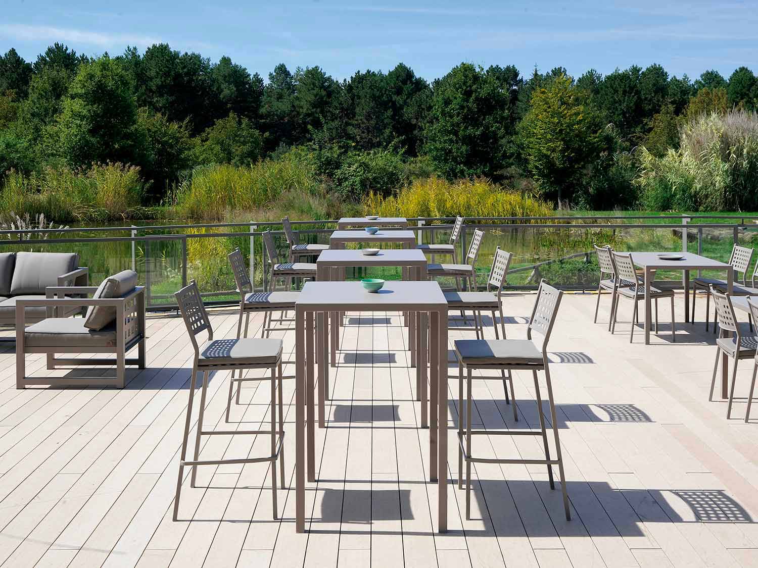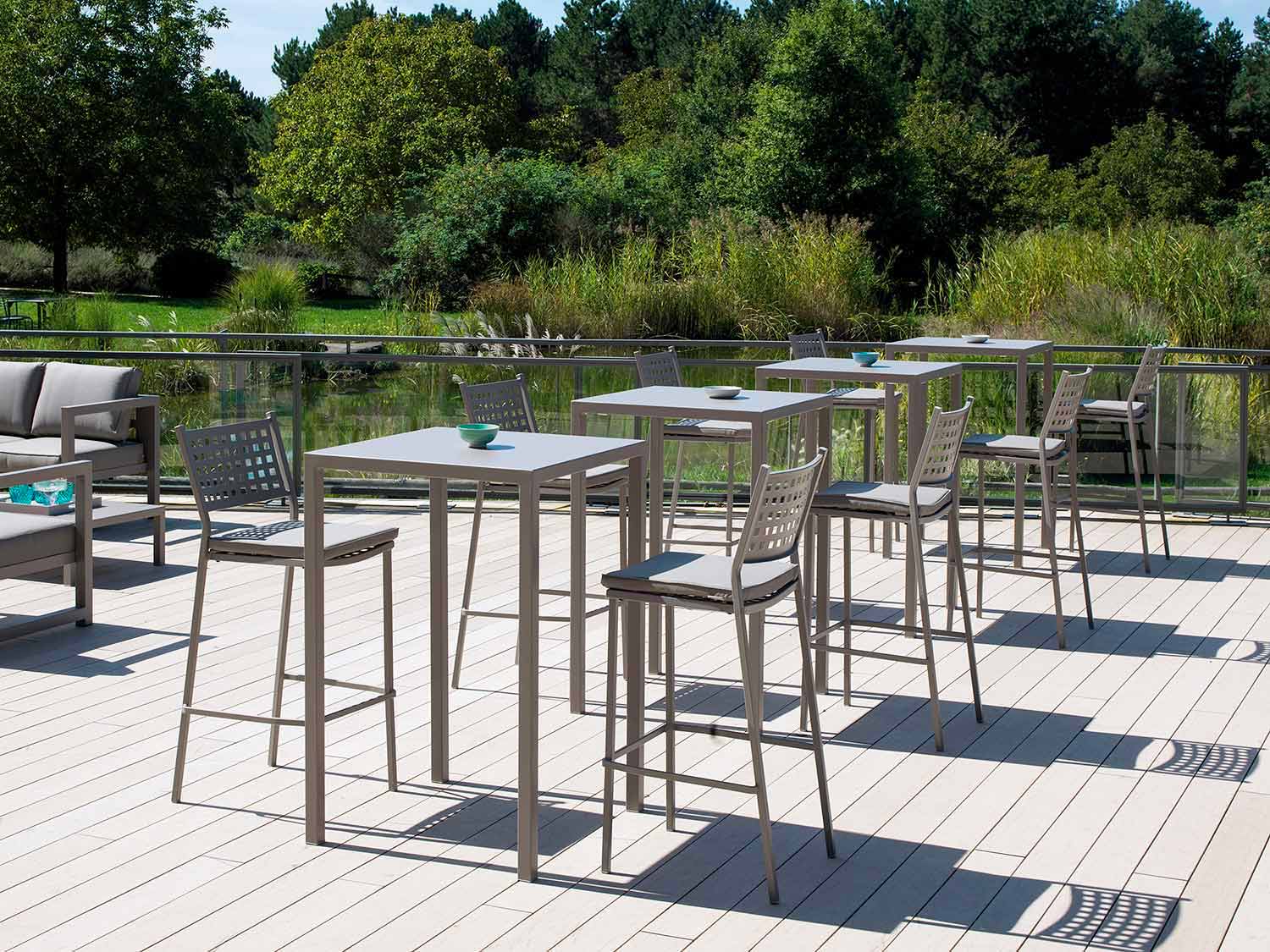 outdoor bar table is characterized by the material it is made of and the particular painting technique. In fact, powder-coated galvanized iron is used for its construction, then painted with thermosetting powders perfect for giving solidity to the product without neglecting the visual aspect. The table is also self-leveling, which means that thanks to its particular structure, it is able to find stability on its own on any type of surface.