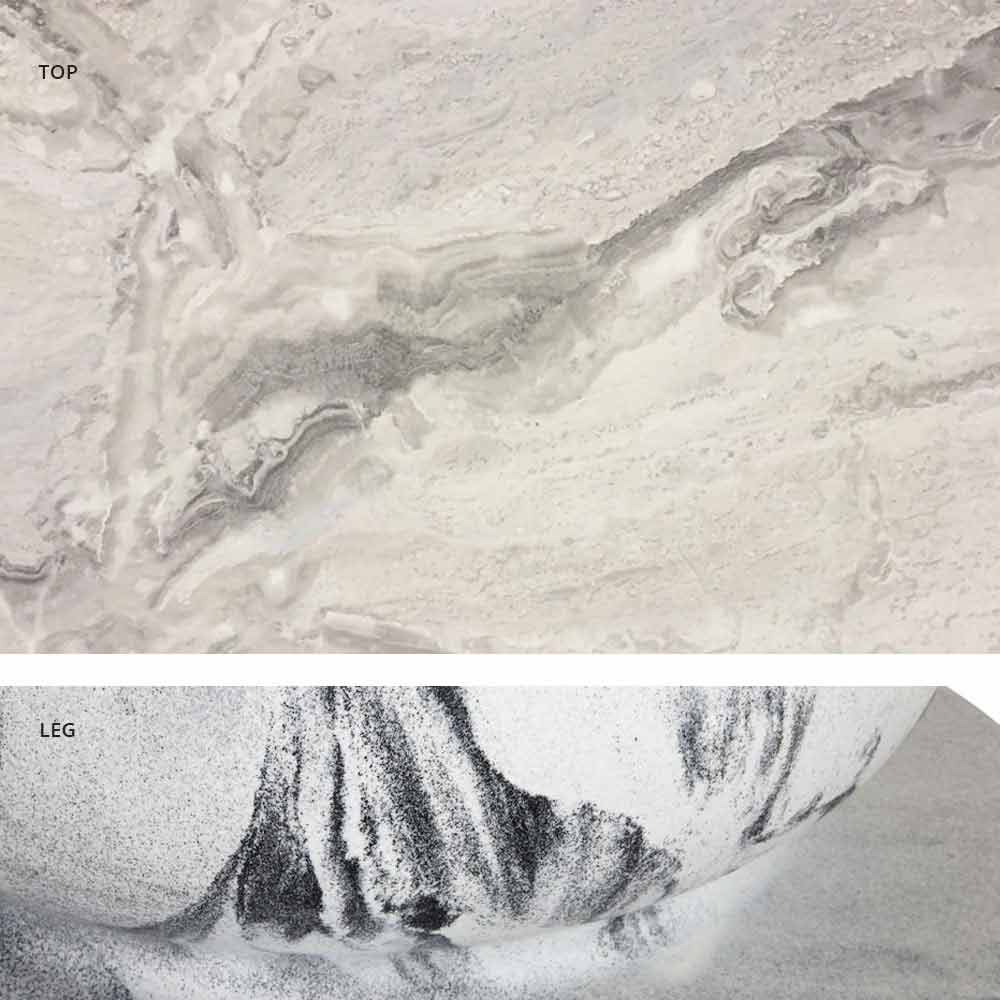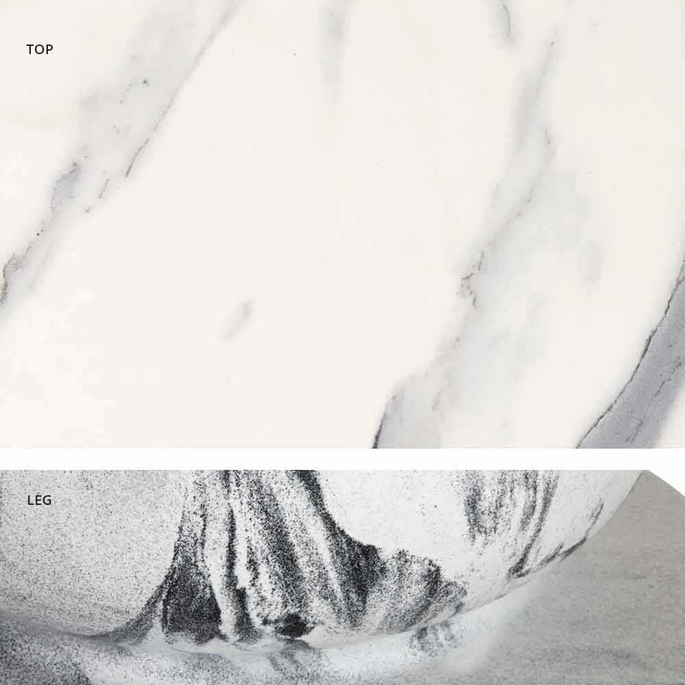classic for the dining room , born thanks to the collaboration with the internal production and the continuous research on the processing of the material. This is how different compositions are born, which are inspired by the most sought-after marble finishes. Halfway between craftsmanship and industry, the in-depth knowledge of the production department on the processing of plastic materials allows for the creation of a unique finish in each piece, with all the imperfections that make the work of a craftsman wonderful.