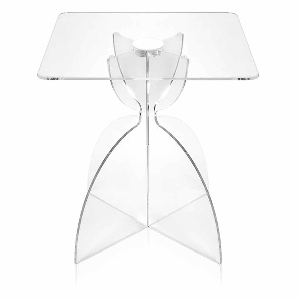 The square small table LAMON has a northern European tone. The transparent, laser-moulded plexiglass base recalls the celtic style and gives an exotic touch of elegance to the domestic space. Both the base and the surface are in acrylic crystal PMMA 100% from virgin polymer. The physical-technical features of the plexiglass (shock-proof, non deformable, unalterable, thermal-insulating) make the small table fit in both the indoor and outdoor spaces.