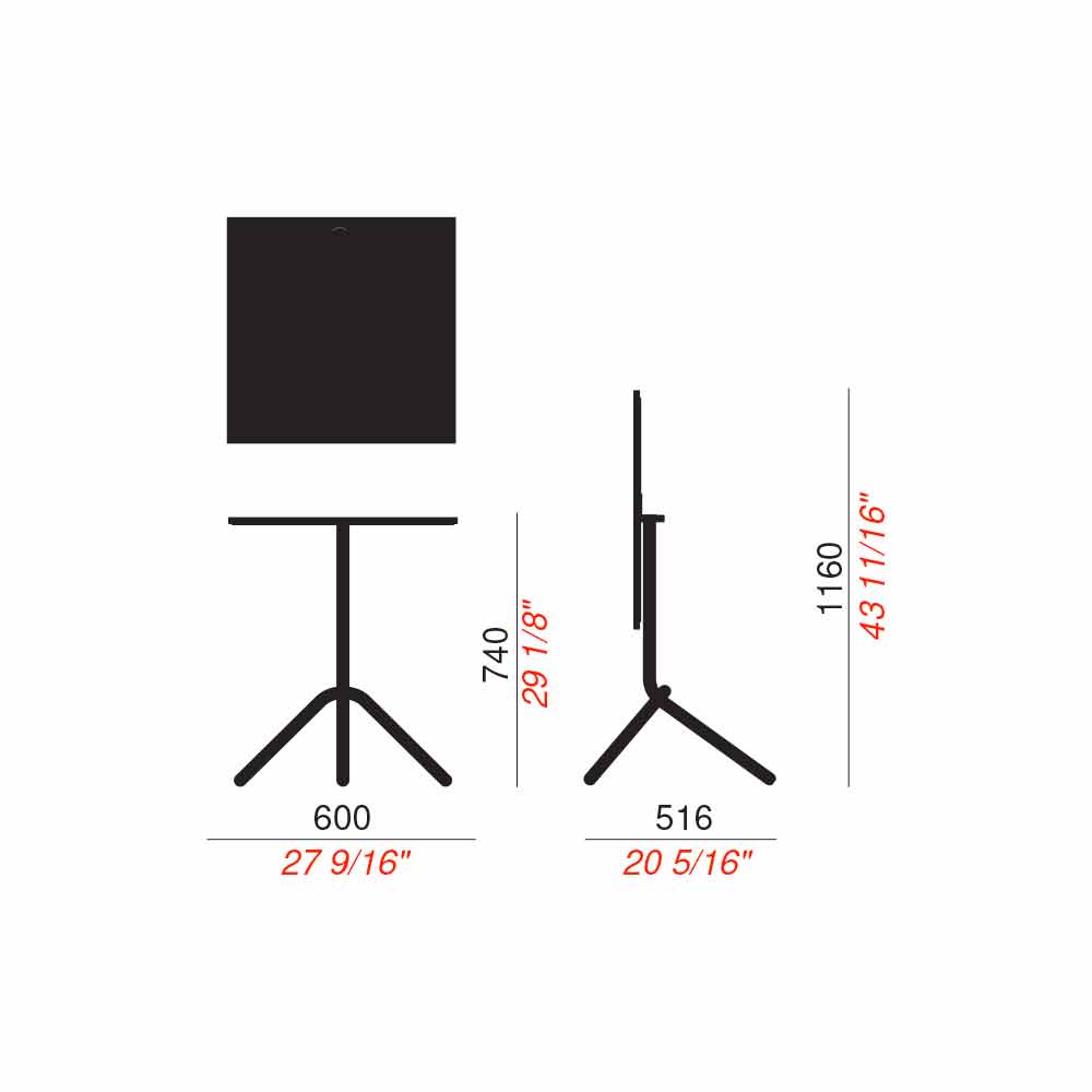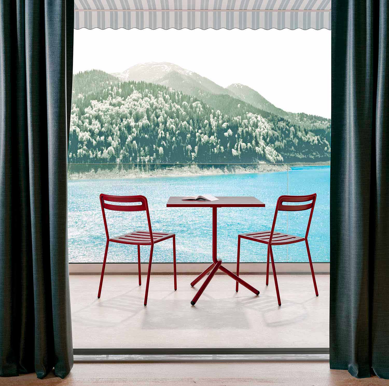 Barnabas is a square outdoor coffee table with a practical and robust design made with a tubular metal structure that presents the particularity of the intertwined legs making the coffee table fun and elegant. The top is instead made of sheet metal available in 6 color variants and in two different sizes thus allowing it to adapt to domestic environments but also to the furnishing of bars and restaurants, both indoors and outdoors. Barnabas can also be folded down and stacked horizontally, thus making it possible to optimize spaces in the best possible way.