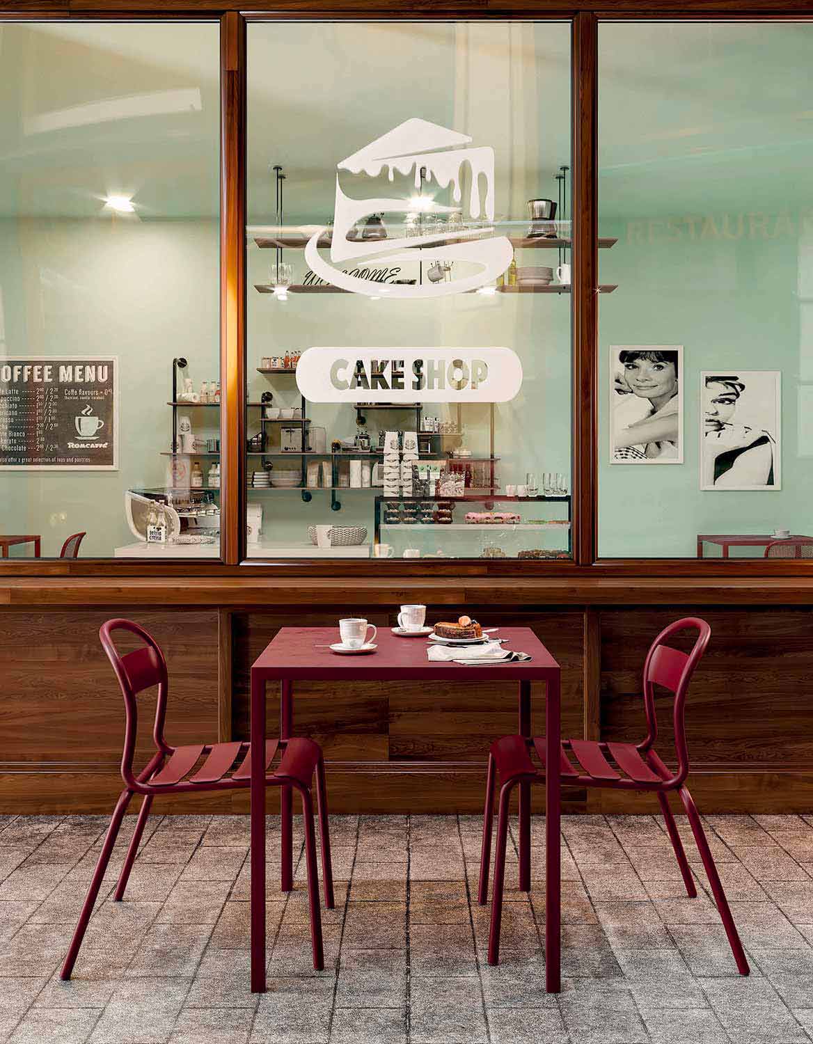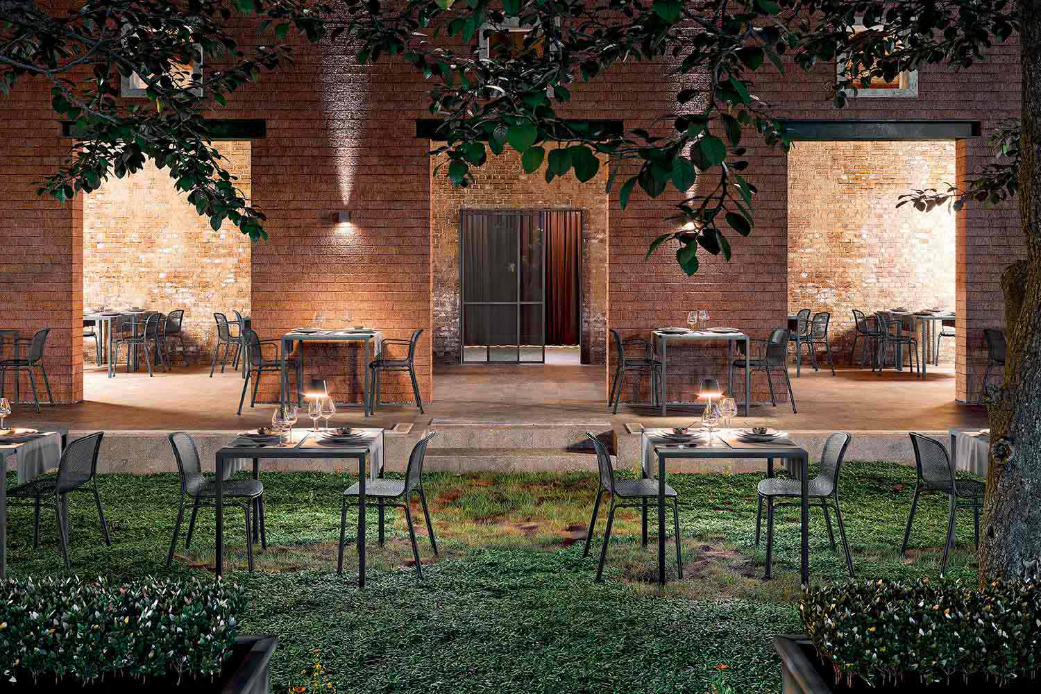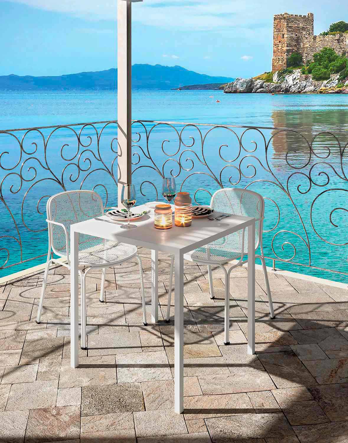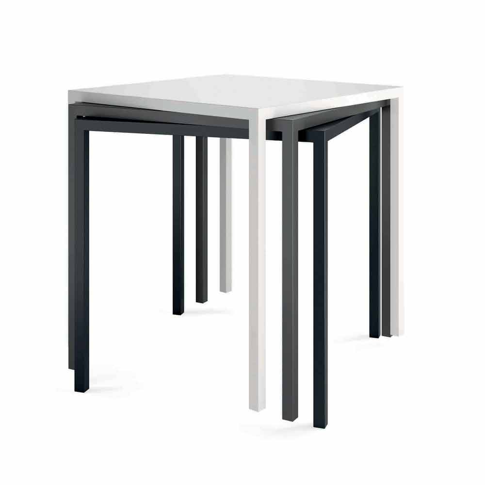 The Benedict coffee table is characterized by a minimal but elegant design that is best suited to domestic environments but also and above all to common environments such as bars and restaurants both inside and outside. Entirely made of sheet metal, Benedict is equipped with a self-leveling tubular metal structure which makes it perfect even on slightly uneven outdoor floors. Available in 6 color variations and in two different sizes.