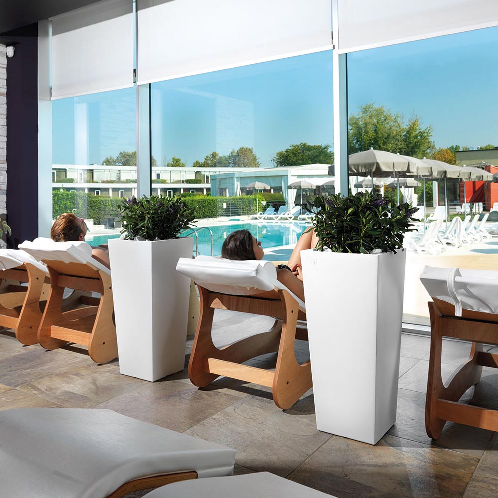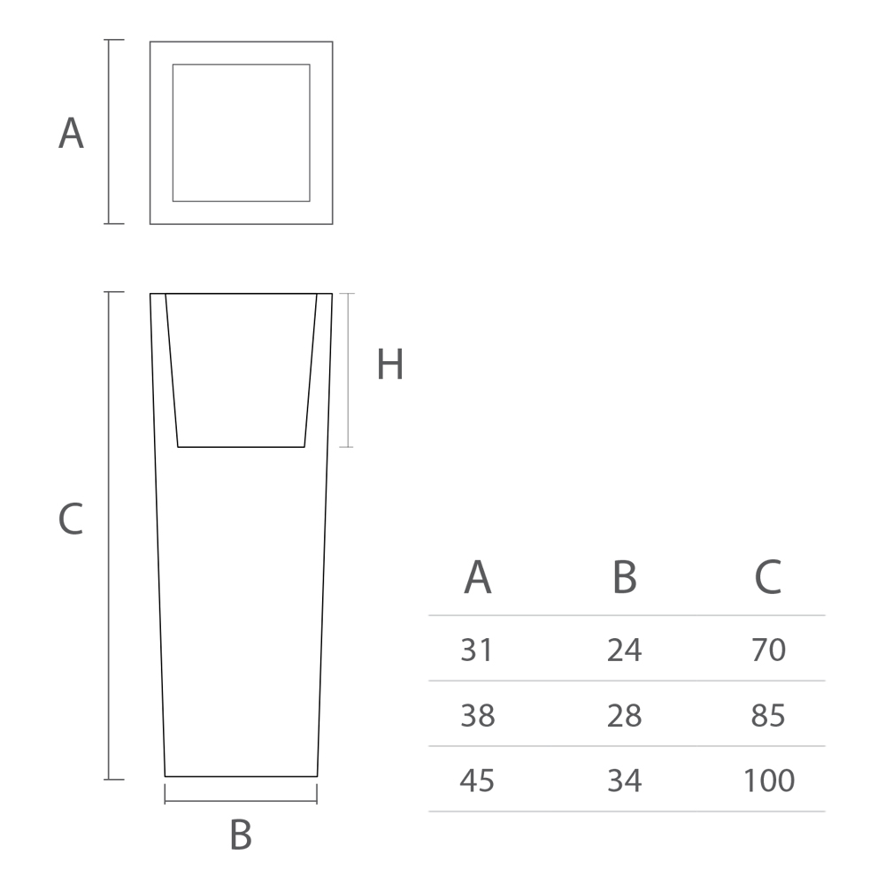 Produced in Italy, this outdoor vase is made of colored polyethylene , a high quality material useful for ensuring the product maximum resistance and great stability . This furnishing element is characterized by a minimal and original design , made of essential lines and a square shape that widens slightly outwards as if to welcome plants and flowers with warmth and elegance.