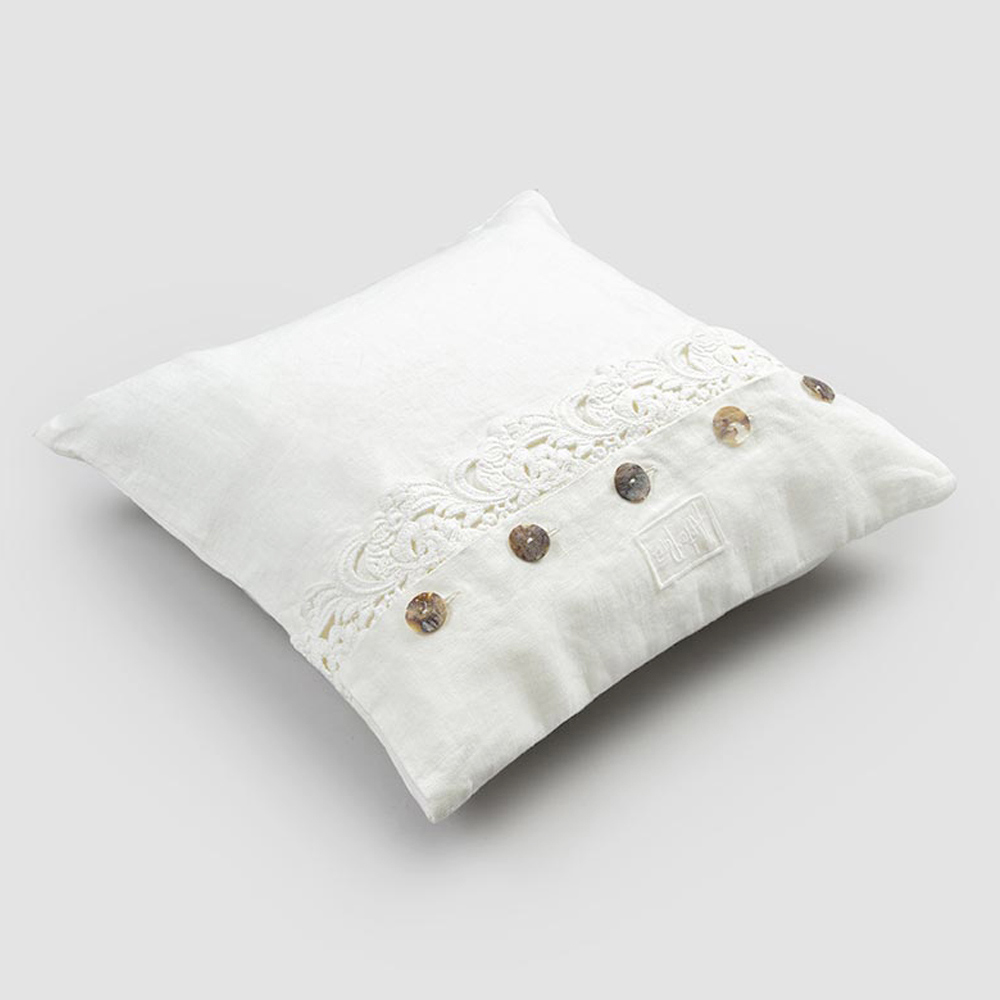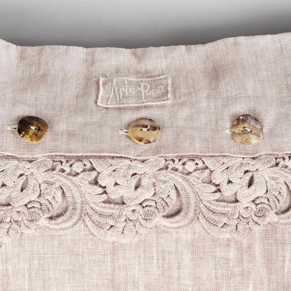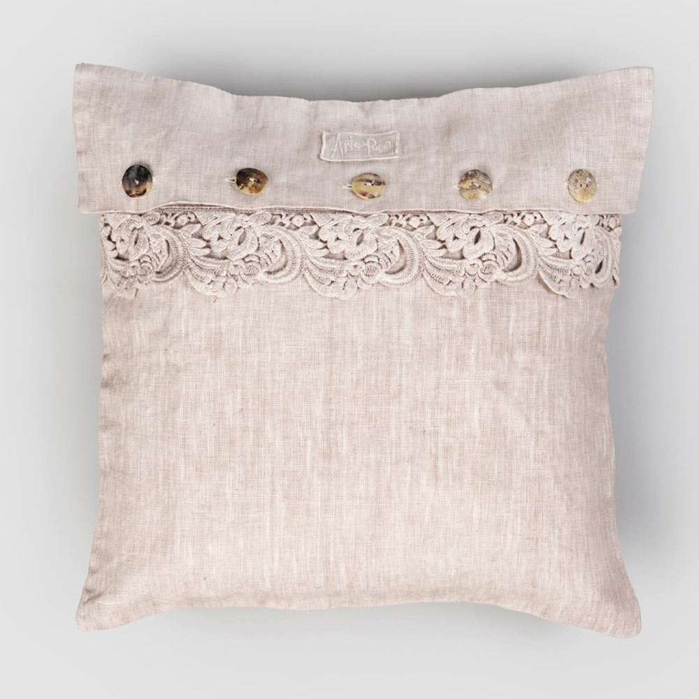 Square Pillowcase in Dusty Linen or Retro with Buttons and Lace Armonia - Logos