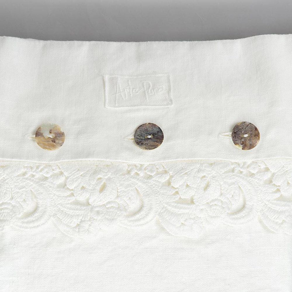 Square pillowcase in pure linen with harmony lace and buttons with flap, 2 colors made in Italy.