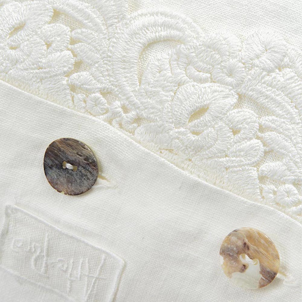 The value of tradition joins the modern lifestyle with this linen pillowcase embellished with harmony lace , agoya mother-of-pearl buttons and flap closure.