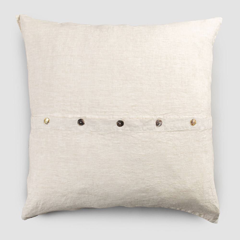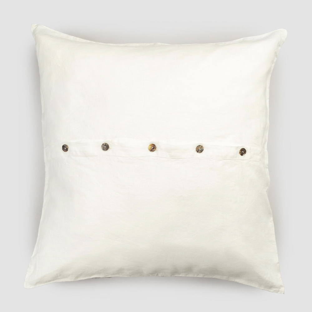 The value of tradition joins the modern lifestyle with this heavy linen pillowcase with central closure with Agoya buttons in mother of pearl, for decorative cushions with a square design.