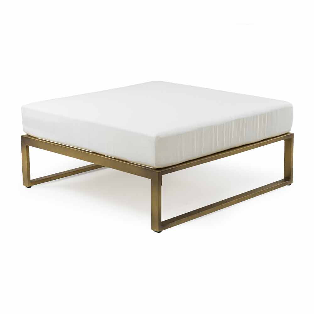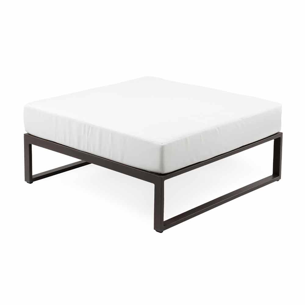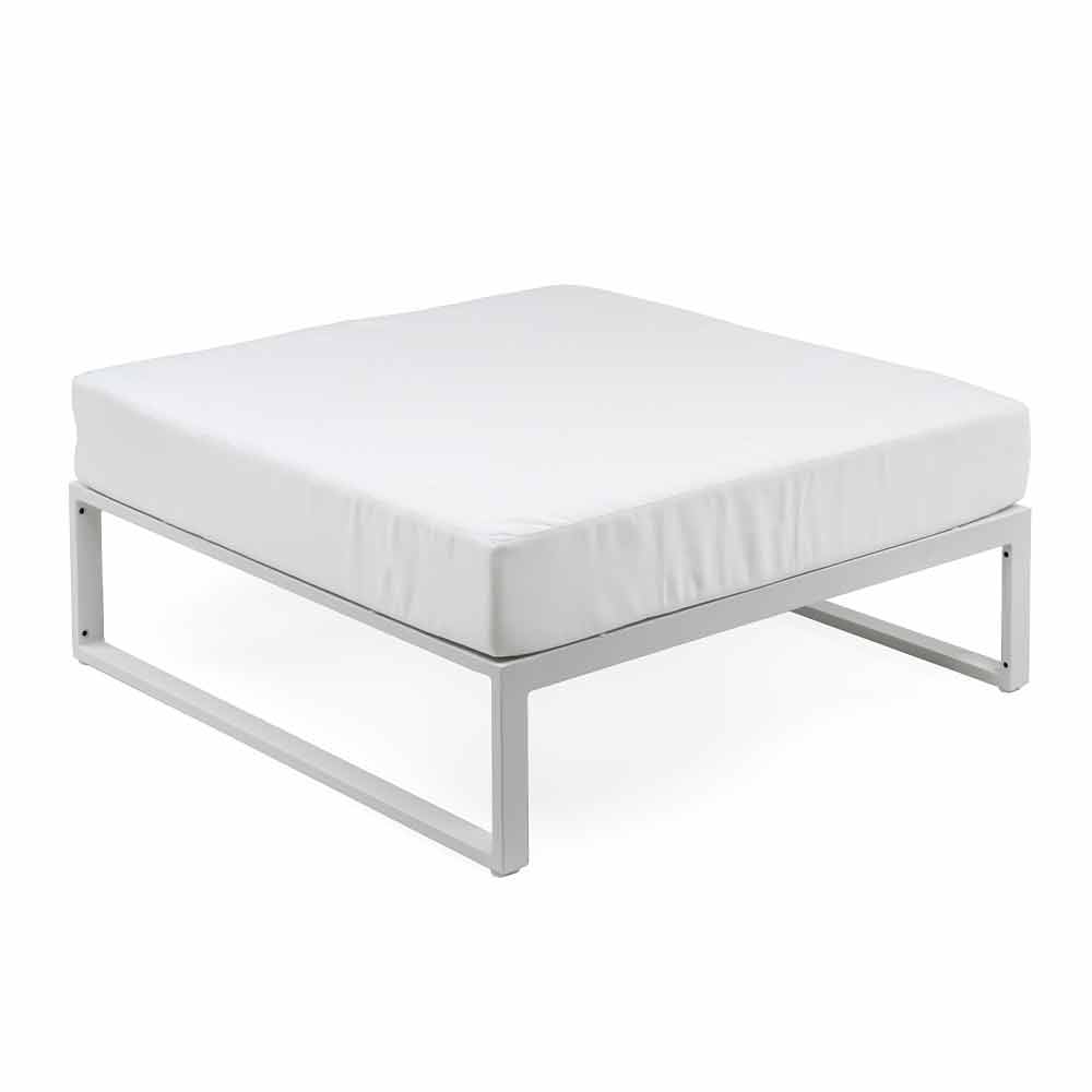 Square pouf for the outdoor living room with aluminum structure in 3 finishes and white fabric cushion, luxury design.