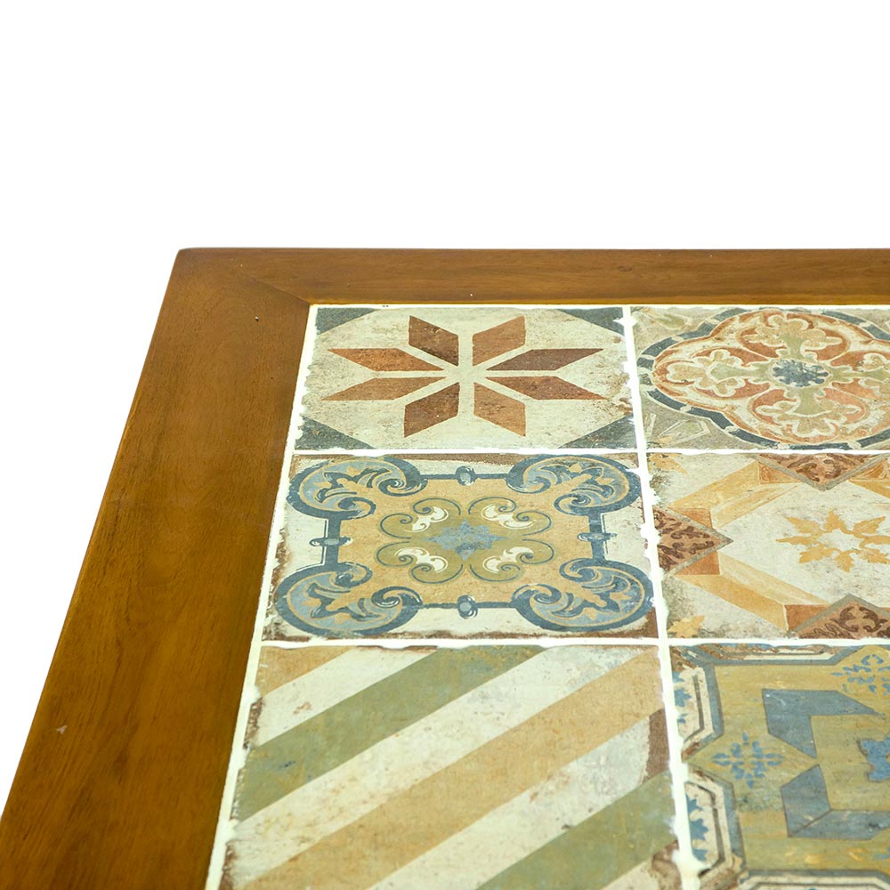 Discover the dining table that combines rustic elegance and traditional art in one exclusive piece of furniture. This beautiful table features a decorated ceramic top, harmoniously set in a solid wooden structure . Each tile is carefully selected to create a mosaic that evokes artisan traditions, making it a unique and fascinating piece.