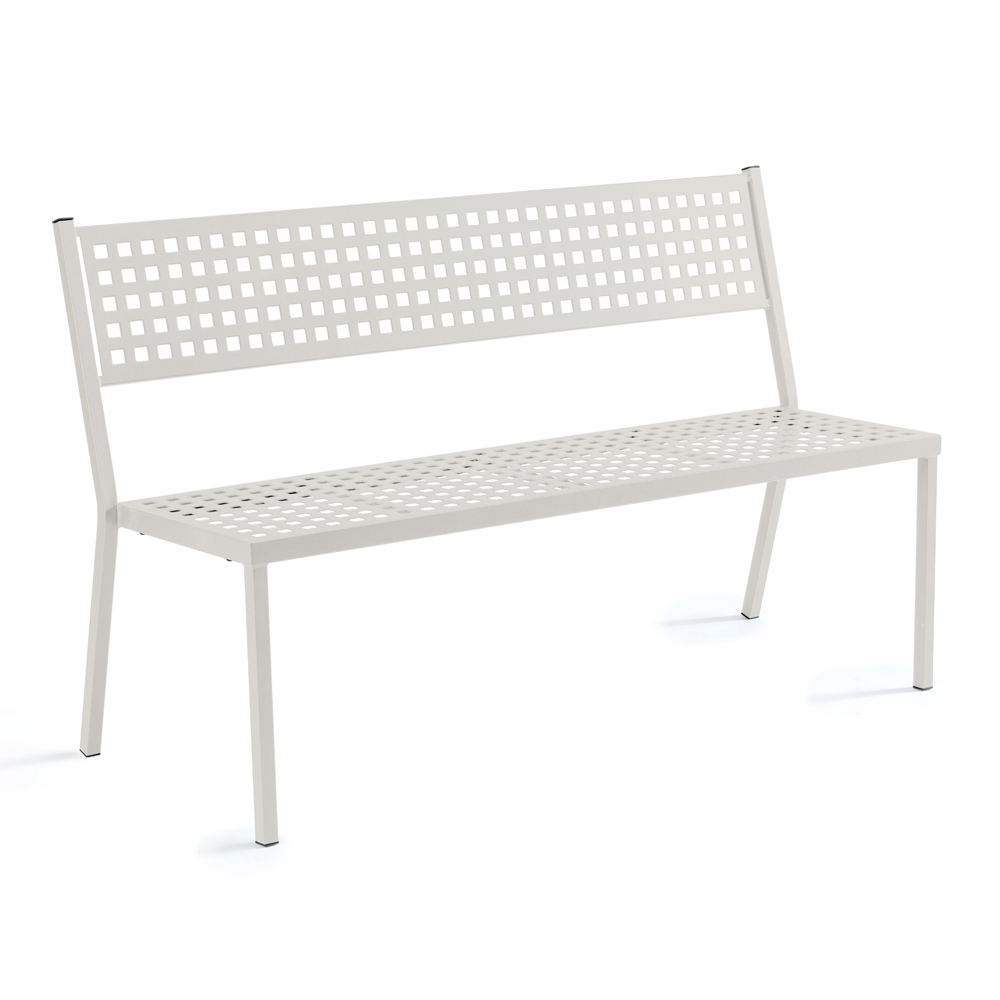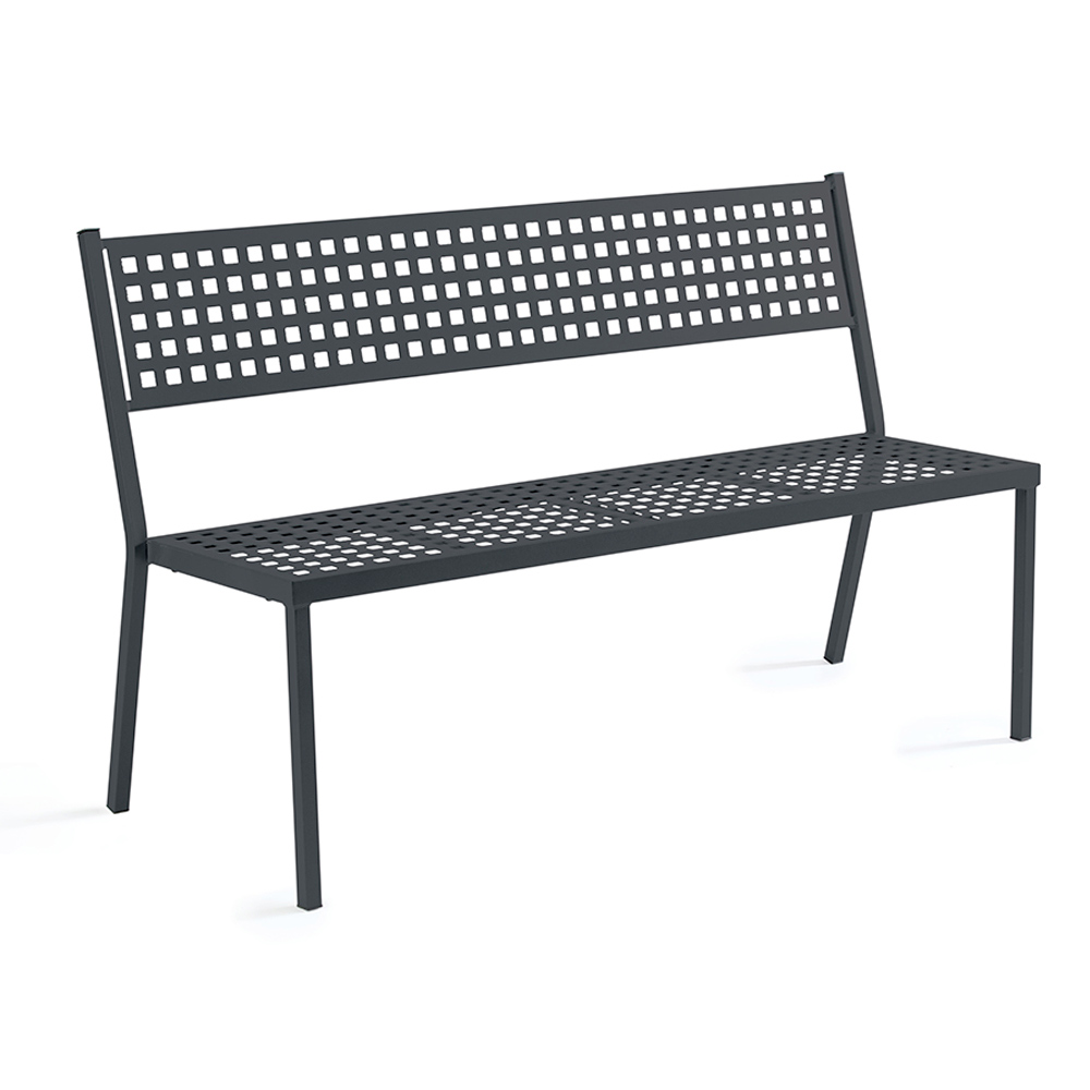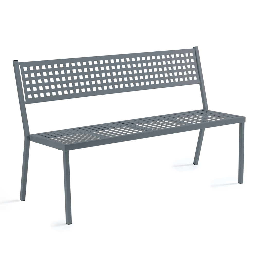 Practical outdoor bench handcrafted in Italy in steel . The particular galvanization of the steel makes it a perfect furnishing element for any outdoor situation, resistant to corrosive atmospheric agents and easy to clean and maintain .