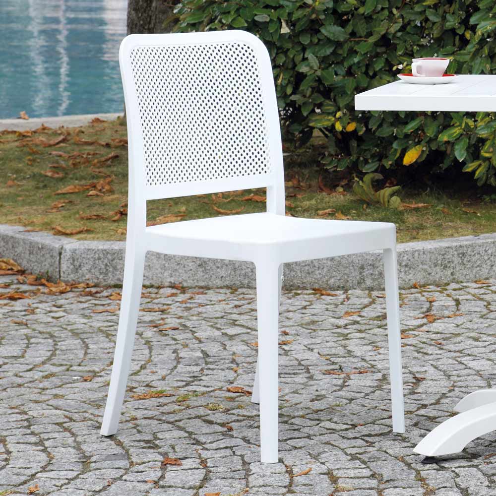 This garden chair stands out for its elegant and minimalist design , perfect for adding a touch of style to any outdoor space. The polypropylene structure guarantees durability and resistance to the elements, making it ideal for daily outdoor use.
