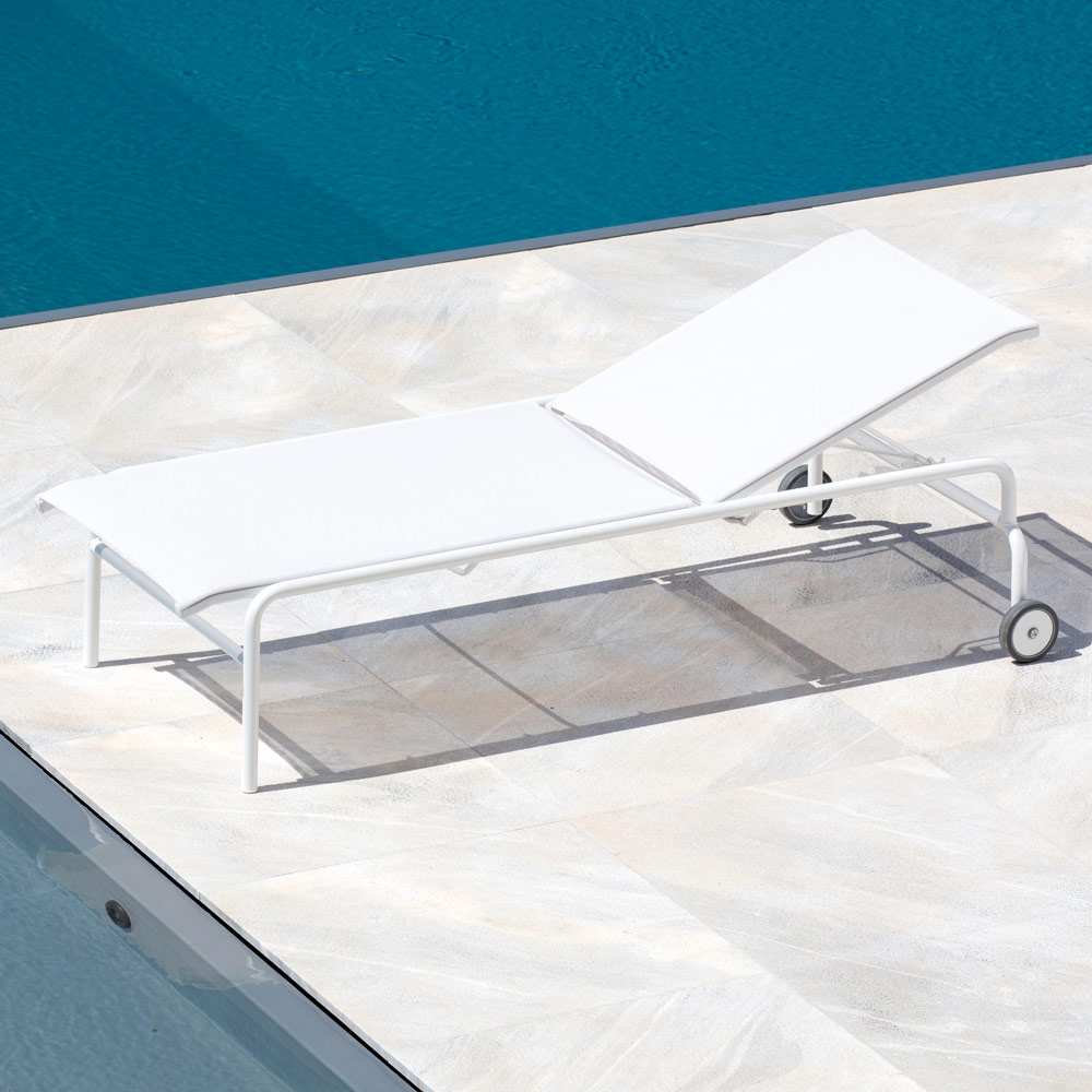Outdoor lounger with galvanized steel frame and Texplast seat made entirely in Italy . The galvanization and the particularity of the Texplast fabric make the lounger resistant to the corrosive action of atmospheric agents such as salt and acidity of rain and therefore perfect for furnishing any type of outdoor space.