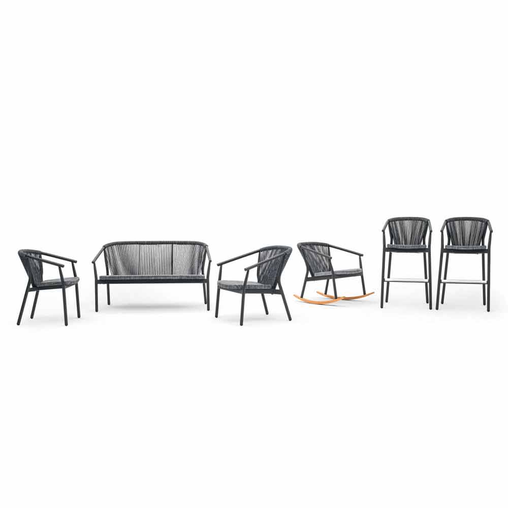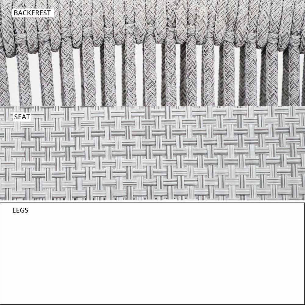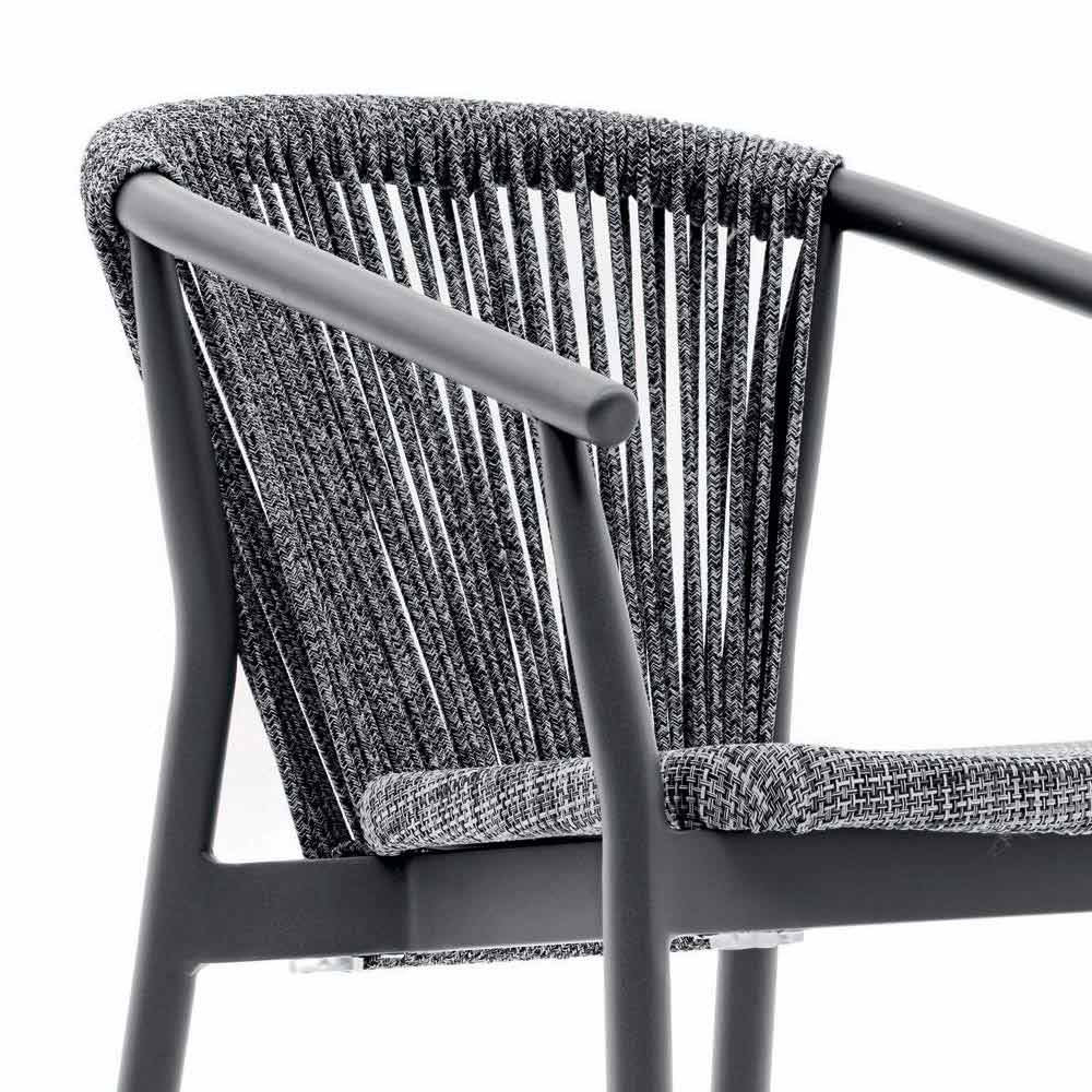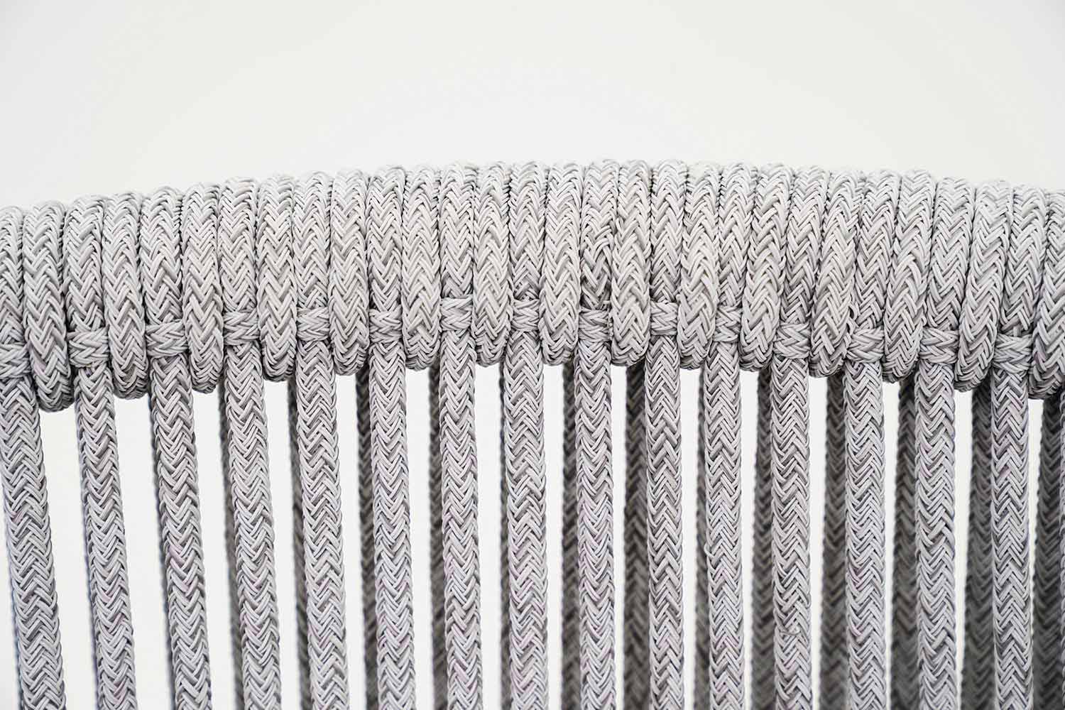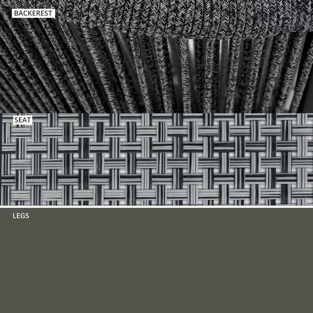 Smart was made with a slender painted aluminum structure , seat in VAR # TEX technical fabric (technical PVC fabric) and back in VAR # TEX synthetic cord (technical PVC fabric).