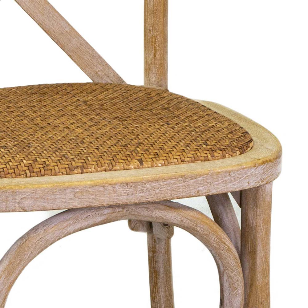 The cross -shaped backrest with sinuous lines and the contoured seat guarantee maximum comfort during use, making it an ideal choice for dining rooms , kitchens or contract environments such as charming restaurants and bistros. The natural wood finish highlights the warm texture and unique grain of the material, adding a touch of welcome and authenticity .