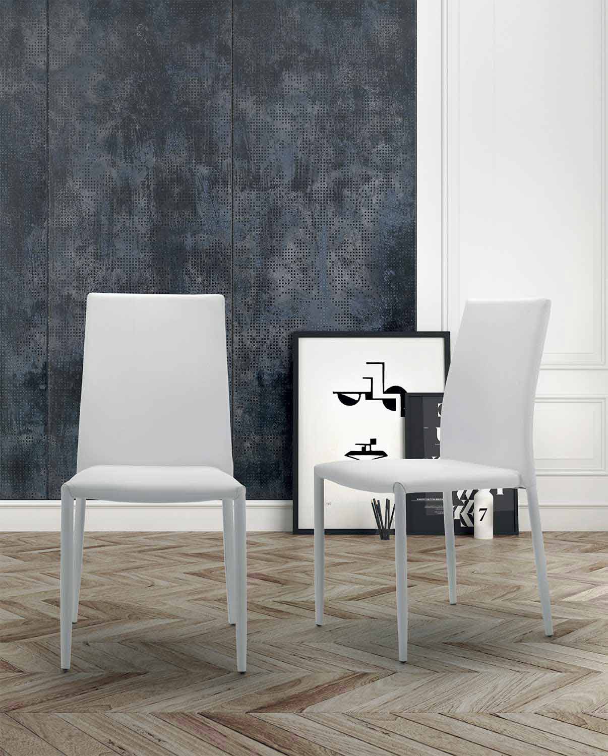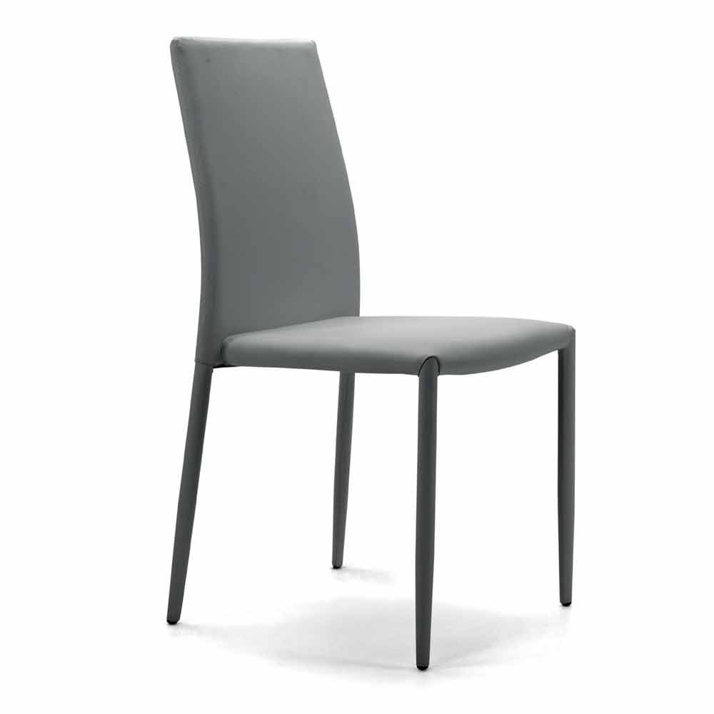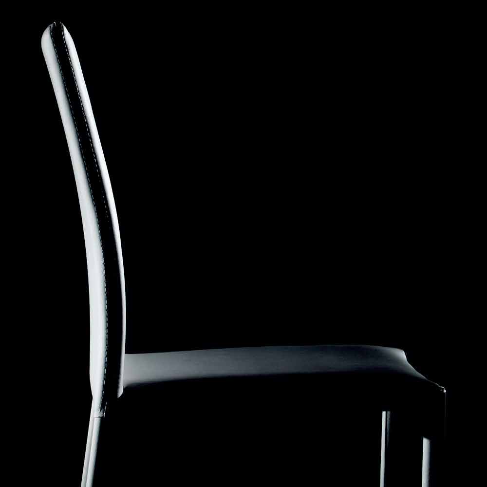 Padded chair for luxury dining room, stackable and completely covered in eco-leather; made in Italy.