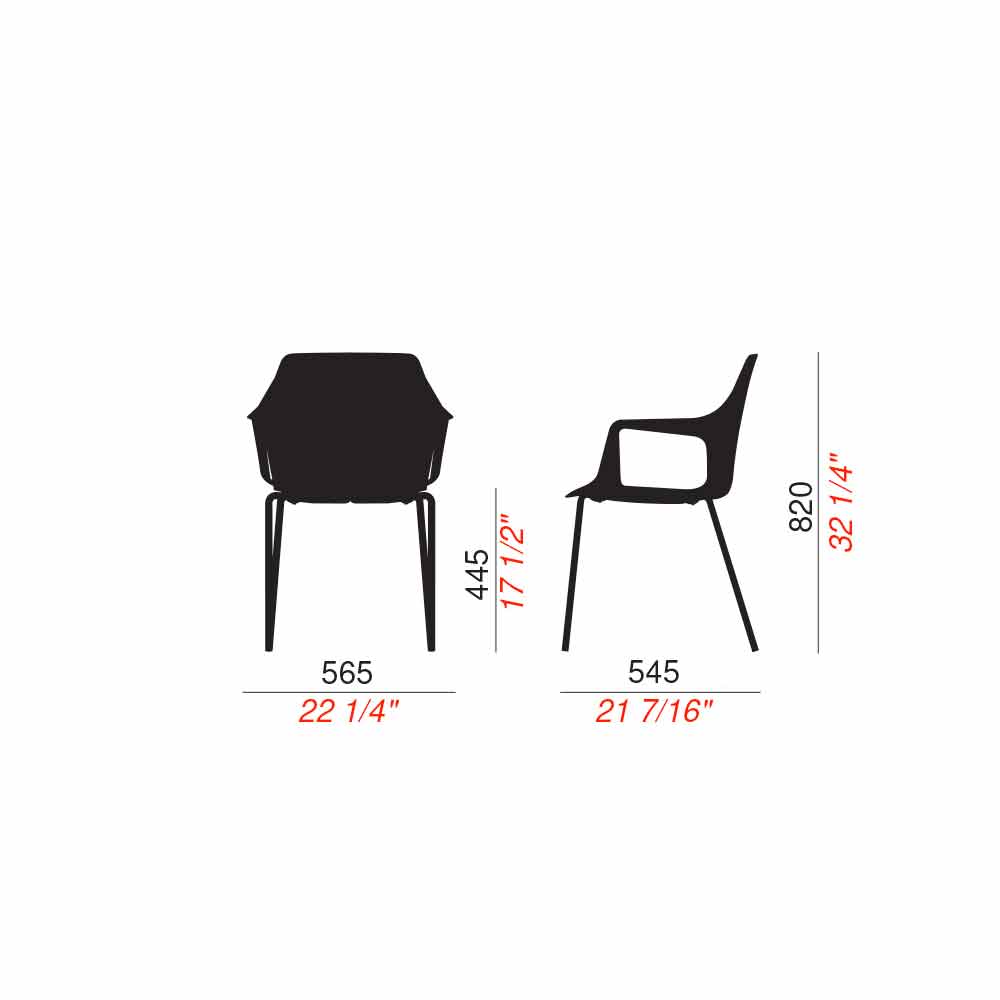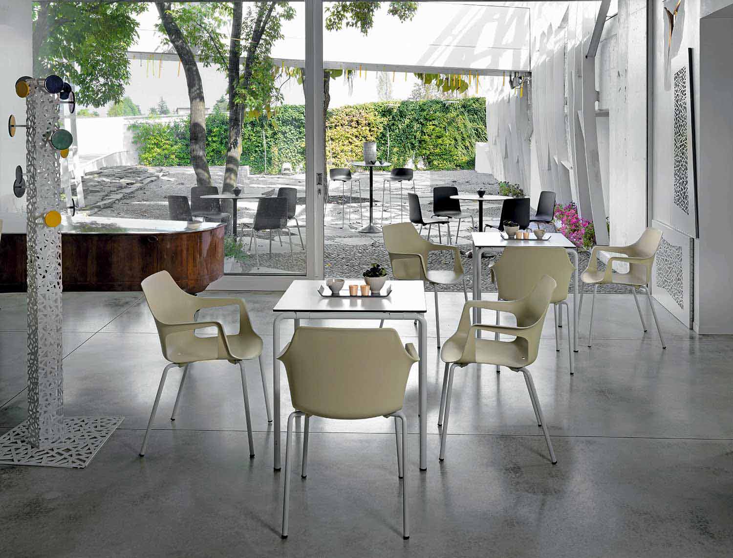 Caramel is composed of a seat in glass-filled polypropylene available in 7 colors and a chromed metal structure.